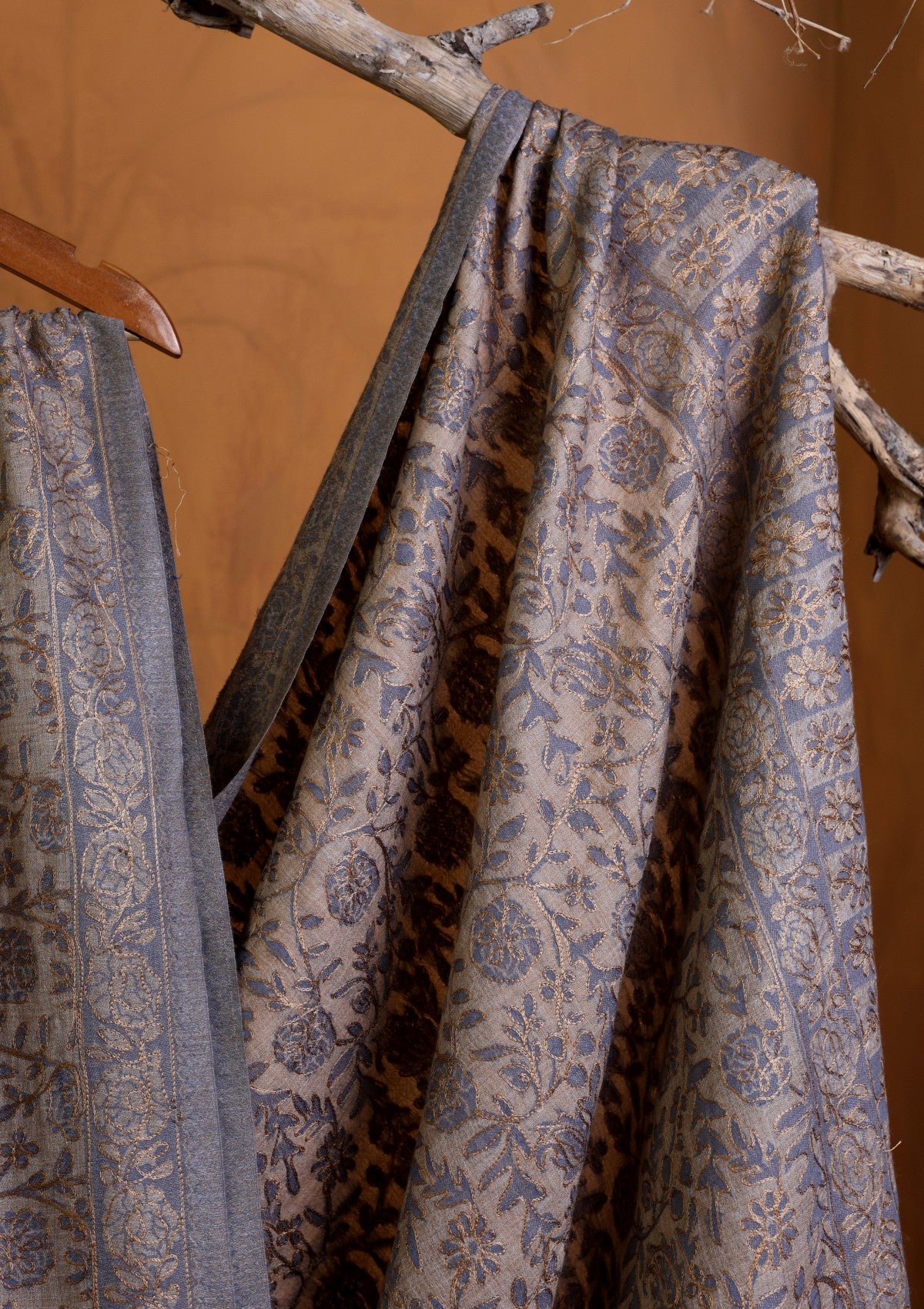 Pashmina Jamawar Ari Work Shawl D#06 - L Grey