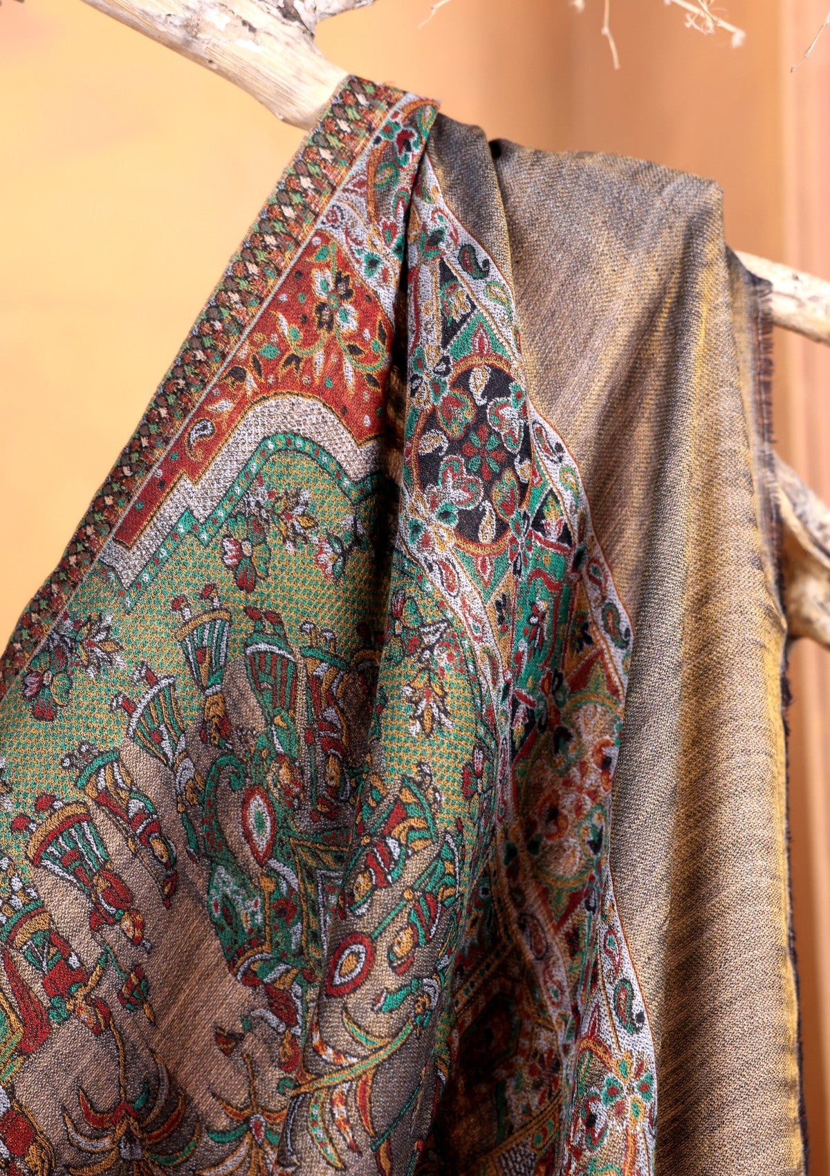 Pashmina Zari Jamawar Shawl D#01 - Brown