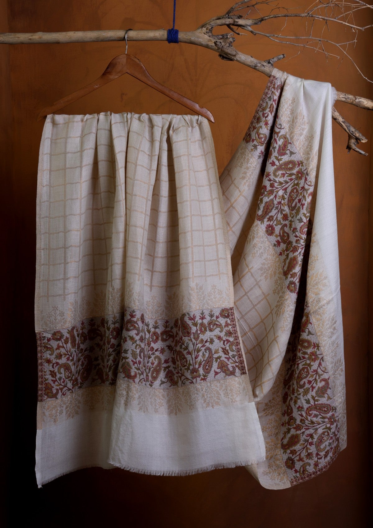 Pashmina Zari Jamawar Shawl D#07 - Off White 4