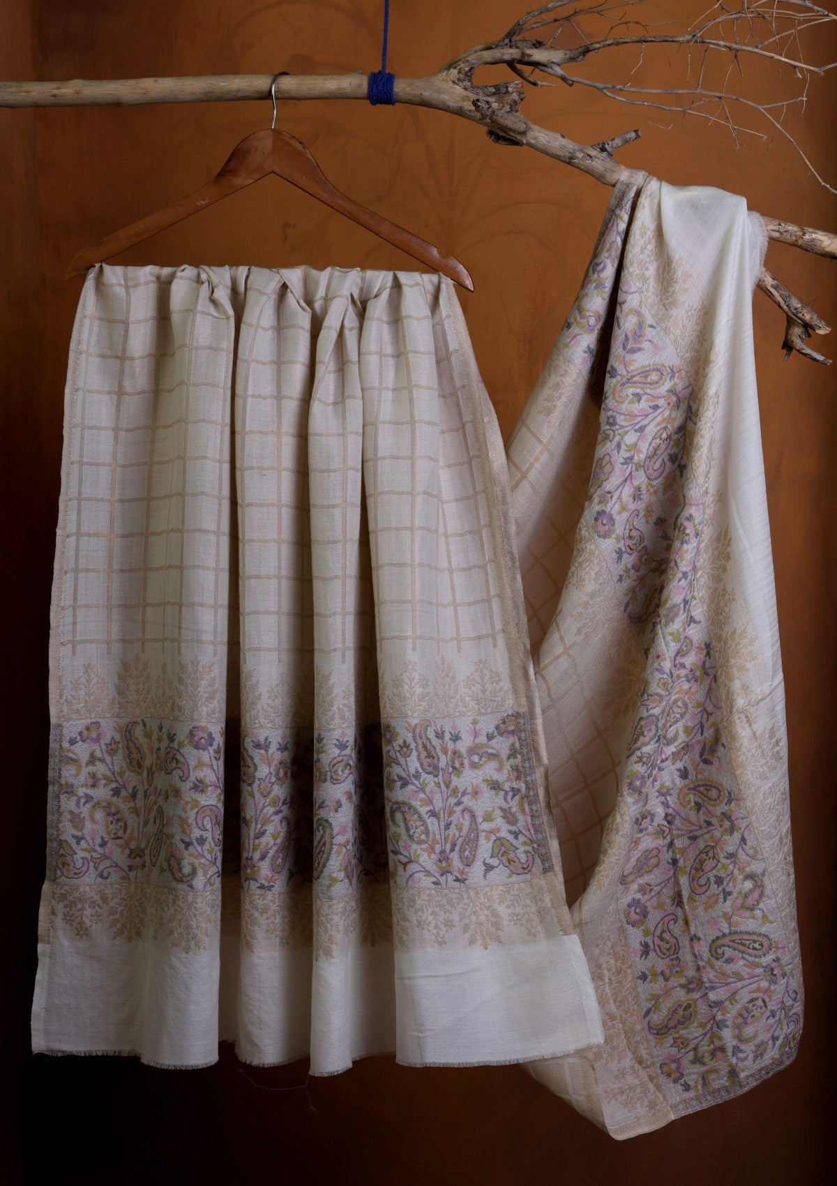 Pashmina Zari Jamawar Shawl D#07 - Off White 5