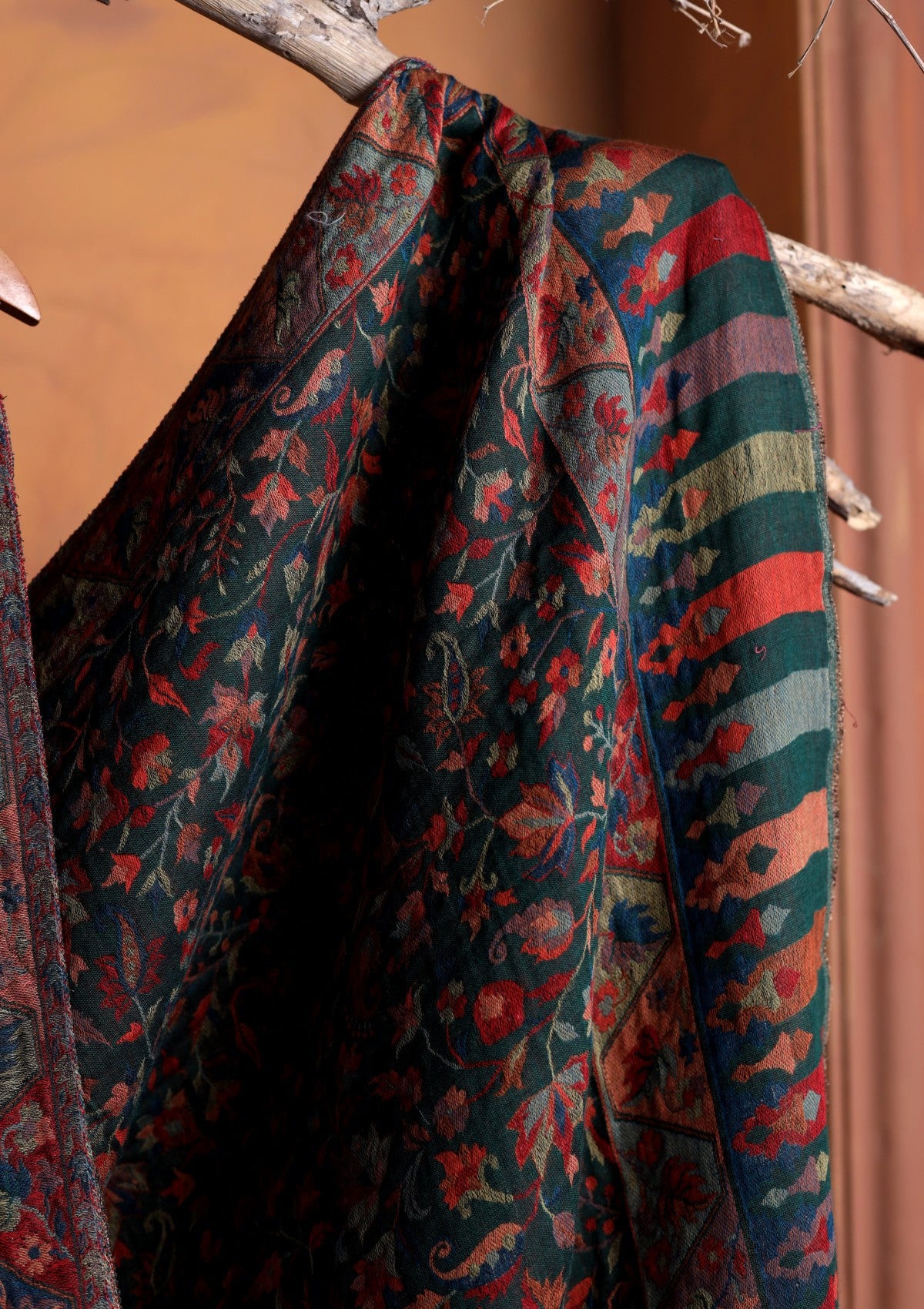 Pashmina Zari Jamawar Shawl D#44 - D Green