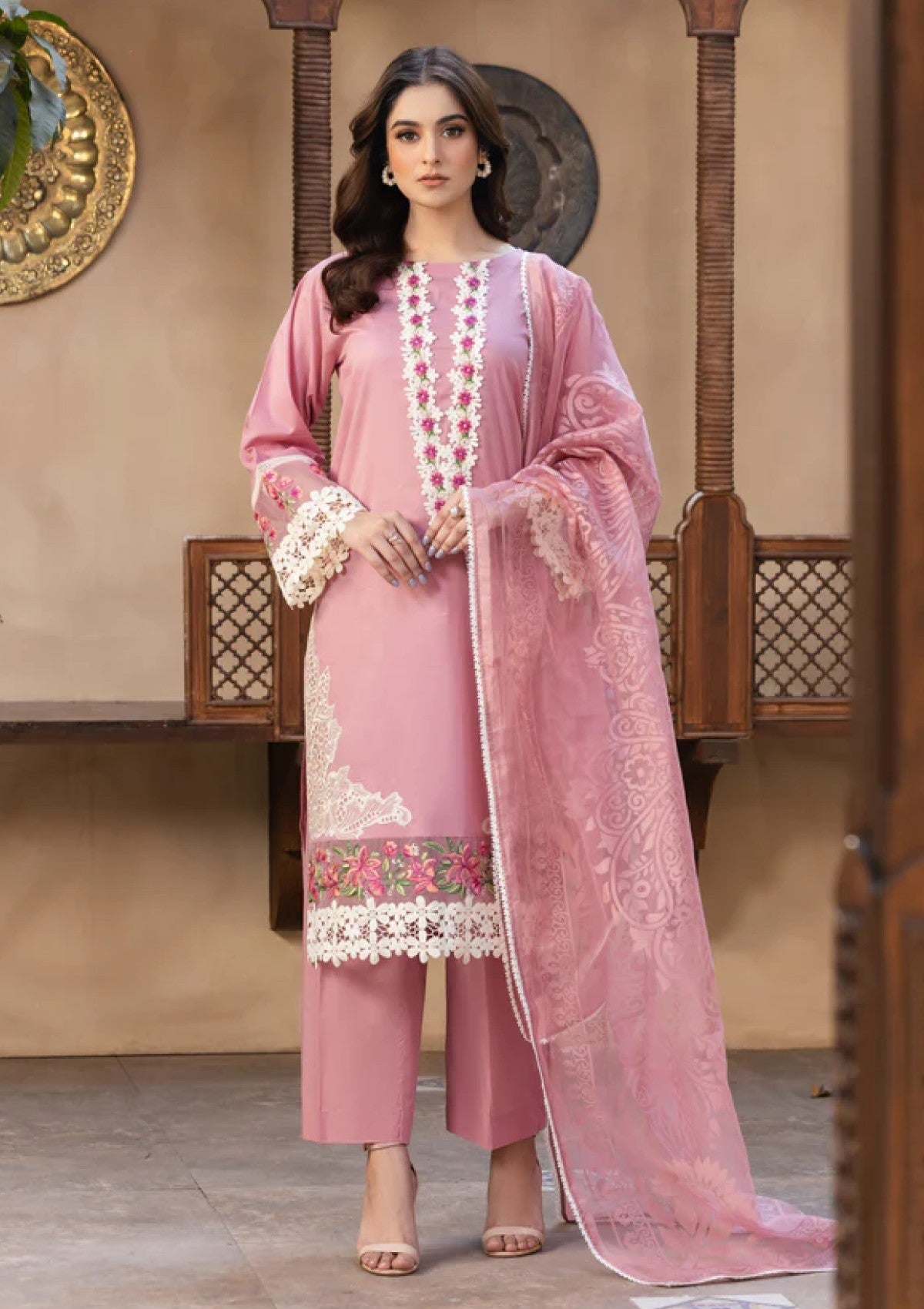 Embrace grace with the Gull Kari 3-piece ensemble, featuring a soft pastel pink lawn kameez with intricate white and magenta floral embroidery, matching straight-fit trousers, and a beautifully patterned organza dupatta. Perfect for festive gatherings or casual elegance.
