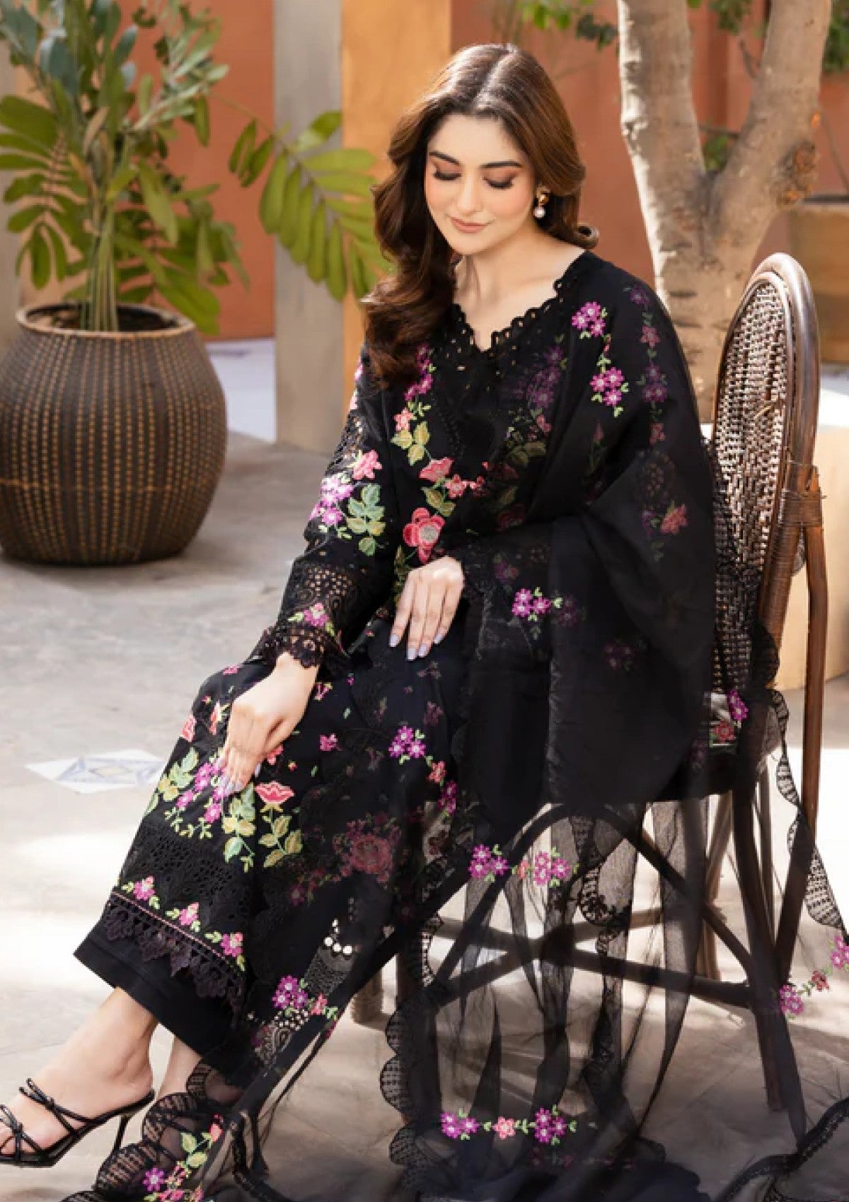 Gull Siyah is an embodiment of grace and sophistication, crafted in premium lawn fabric for effortless summer elegance. This black embroidered suit is adorned with delicate floral embroidery in vibrant hues, creating a stunning contrast that enhances its timeless appeal.