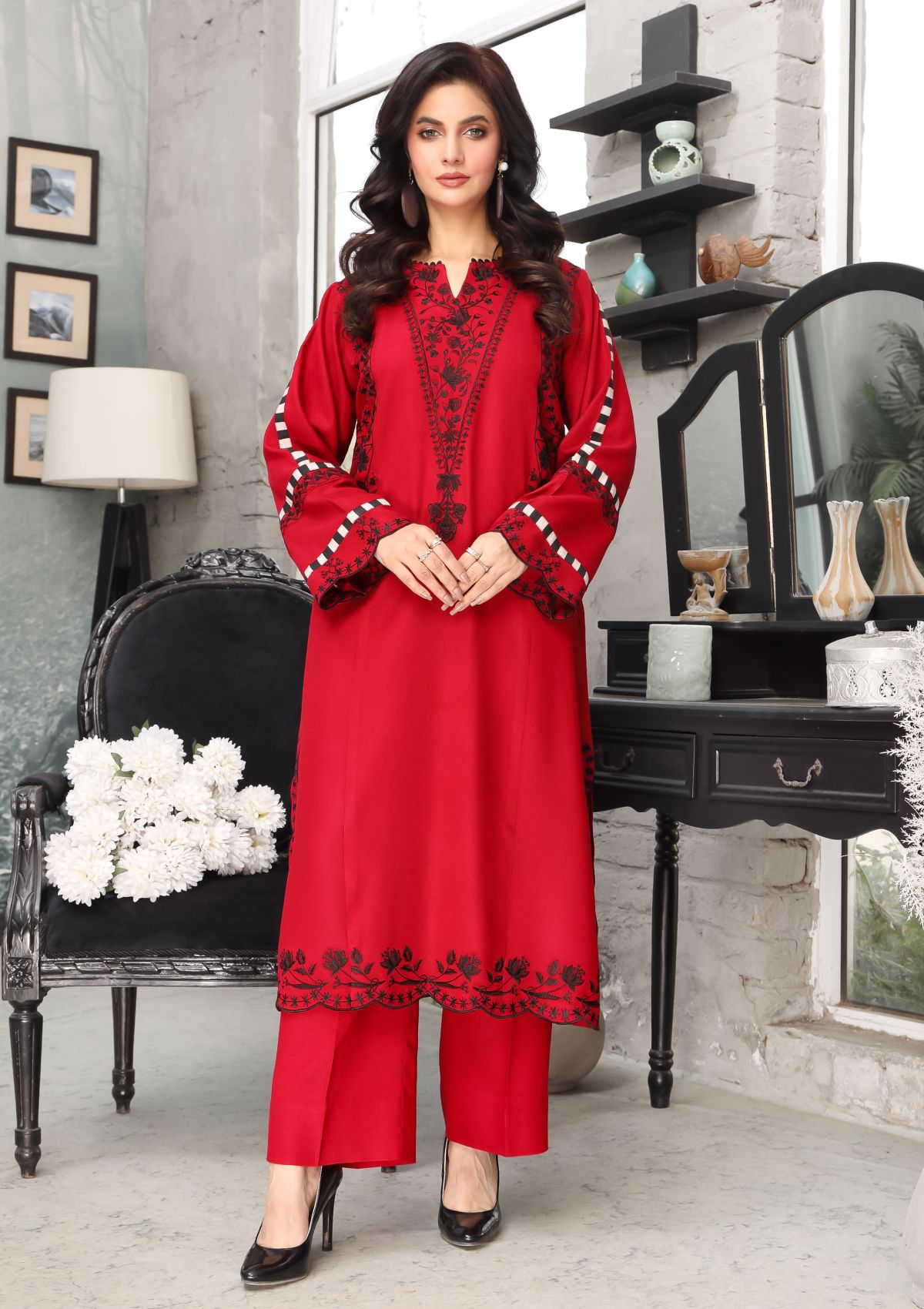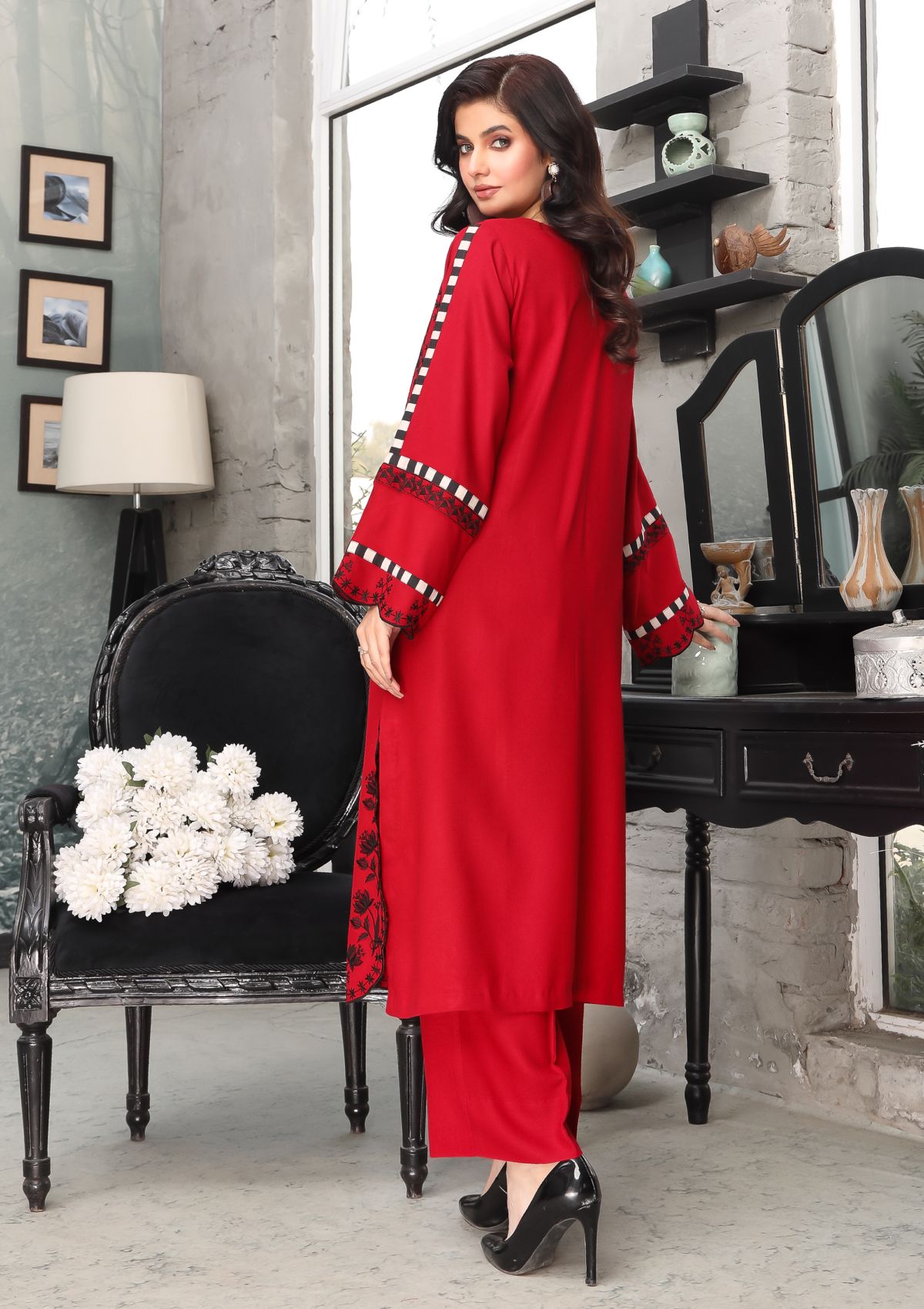 This stylish two-piece stitched suit features an embroidered panel shirt that exudes elegance and sophistication. The shirt is complemented by intricately embroidery and print detailing on the sleeves, adding a touch of artistic flair. The ensemble is paired with comfortable culotte trousers, creating a chic silhouette that is both modern and versatile.