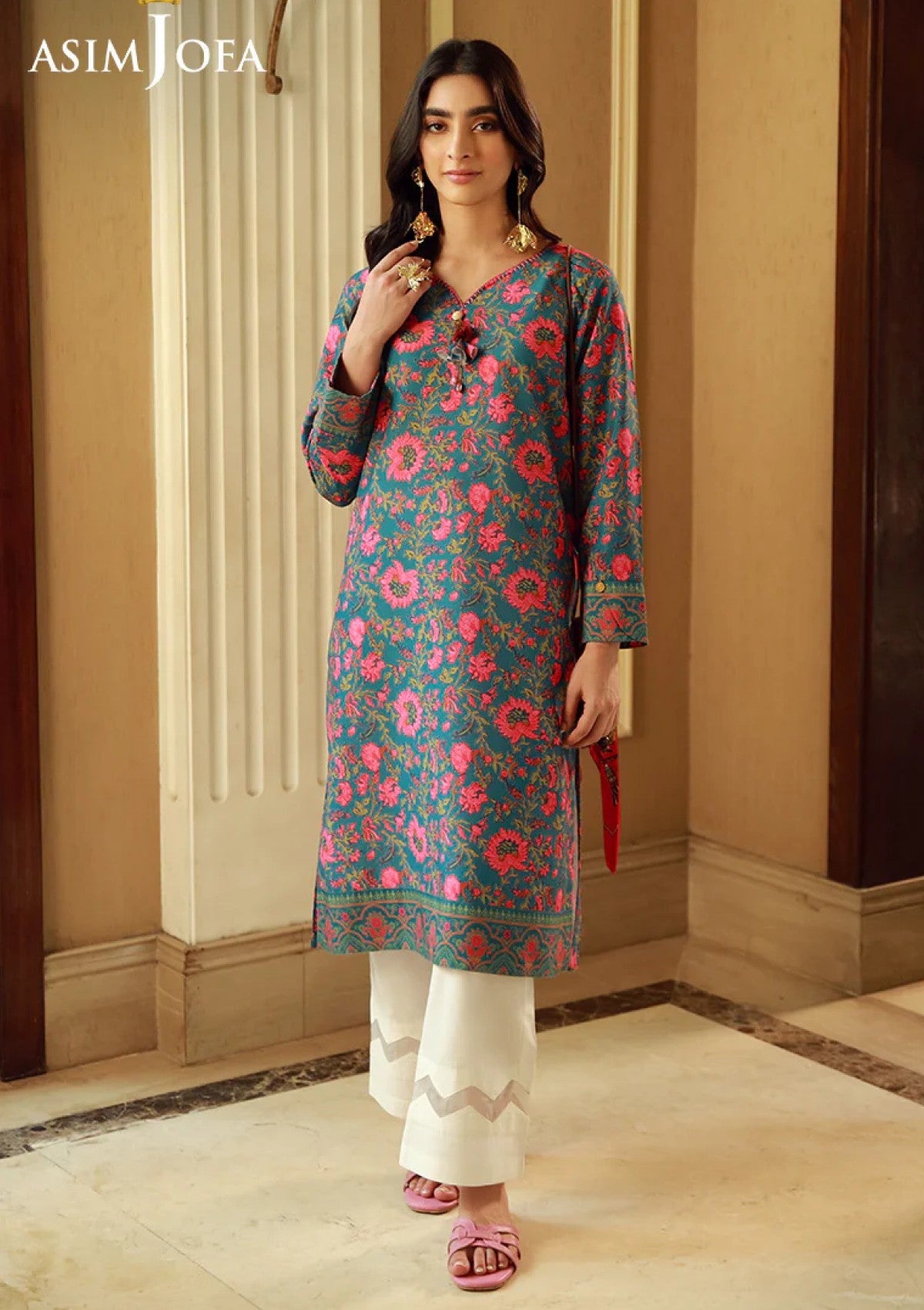 This teal raw silk shirt is a refined masterpiece. The print contrasts beautifully with the deep teal, giving it an air of sophistication and modern elegance. Whether dressing up for a busy day or a classy dinner, this piece stands out for its elegance and versatility.