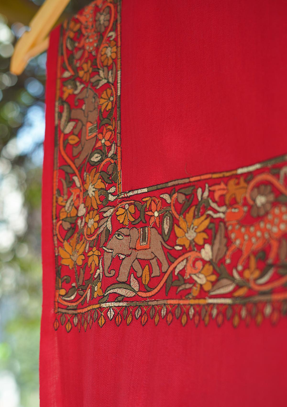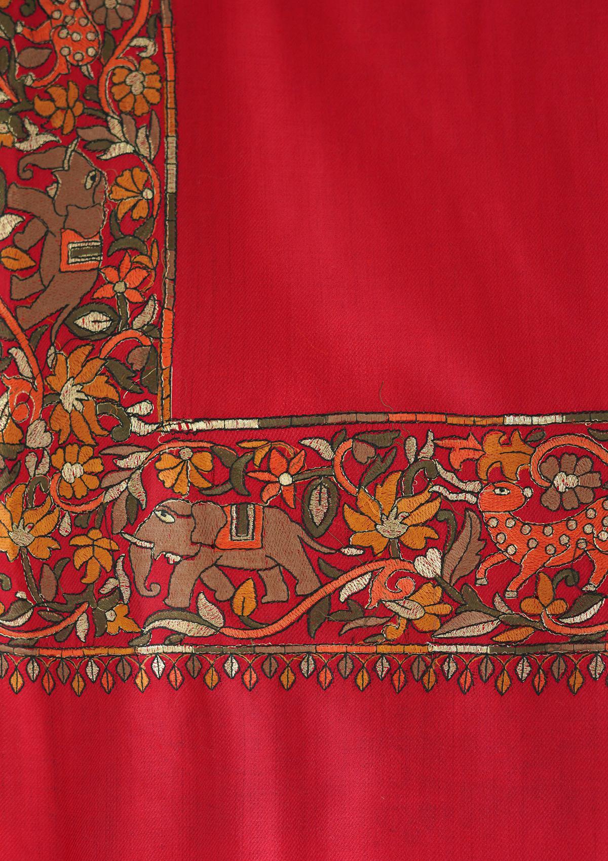Pure Pashmina Embroidered Work Shawl D - 117 - Red