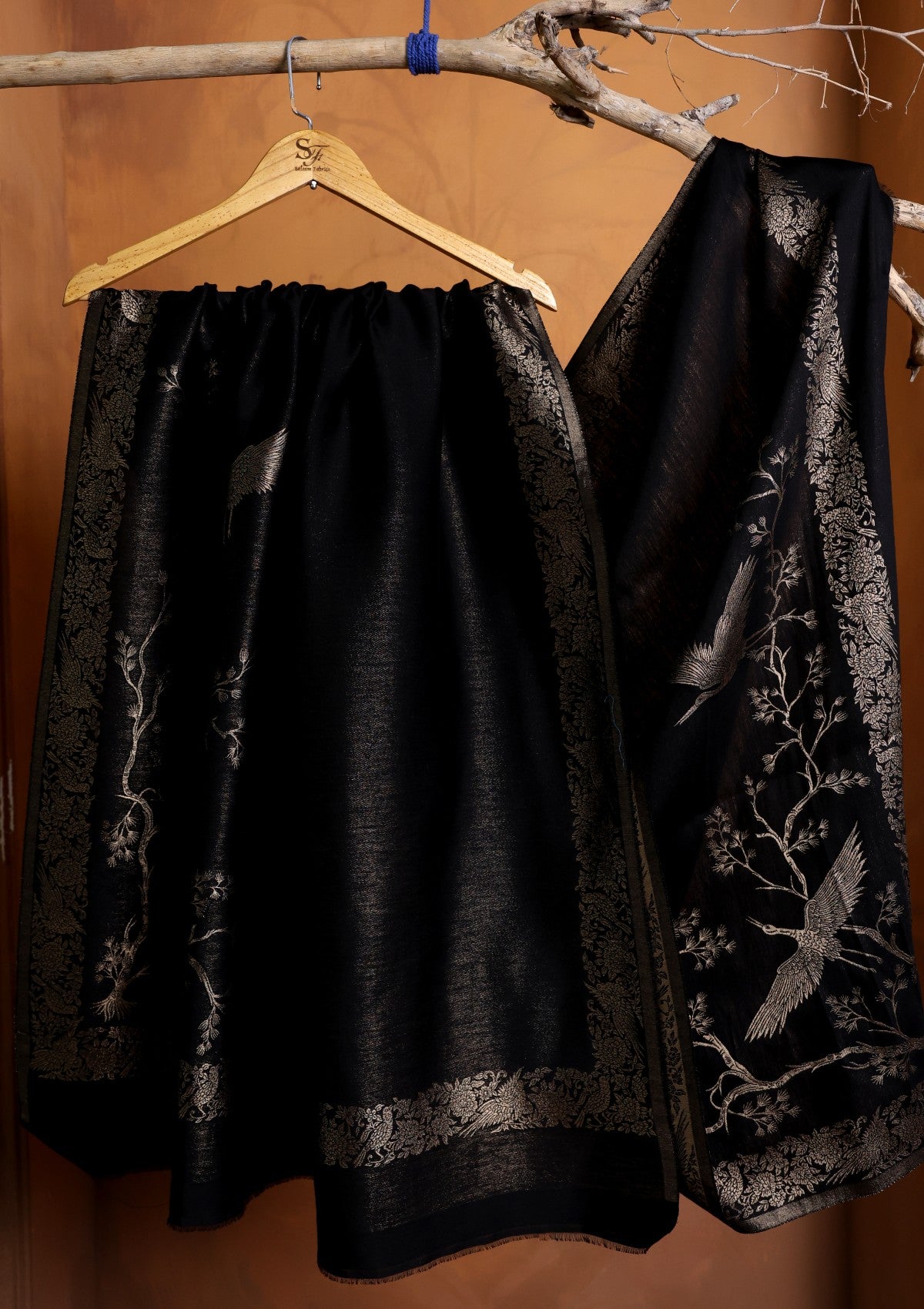 Silk Zari Jamawar Shawl D#04 - Black