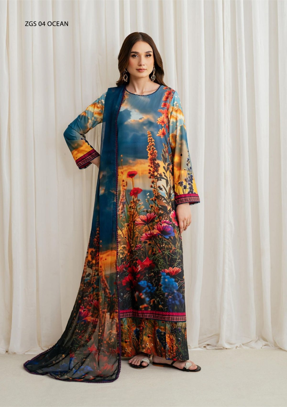 Winter Collection - Zarif - Prints - Georgette Silk - D#04 - Ocean