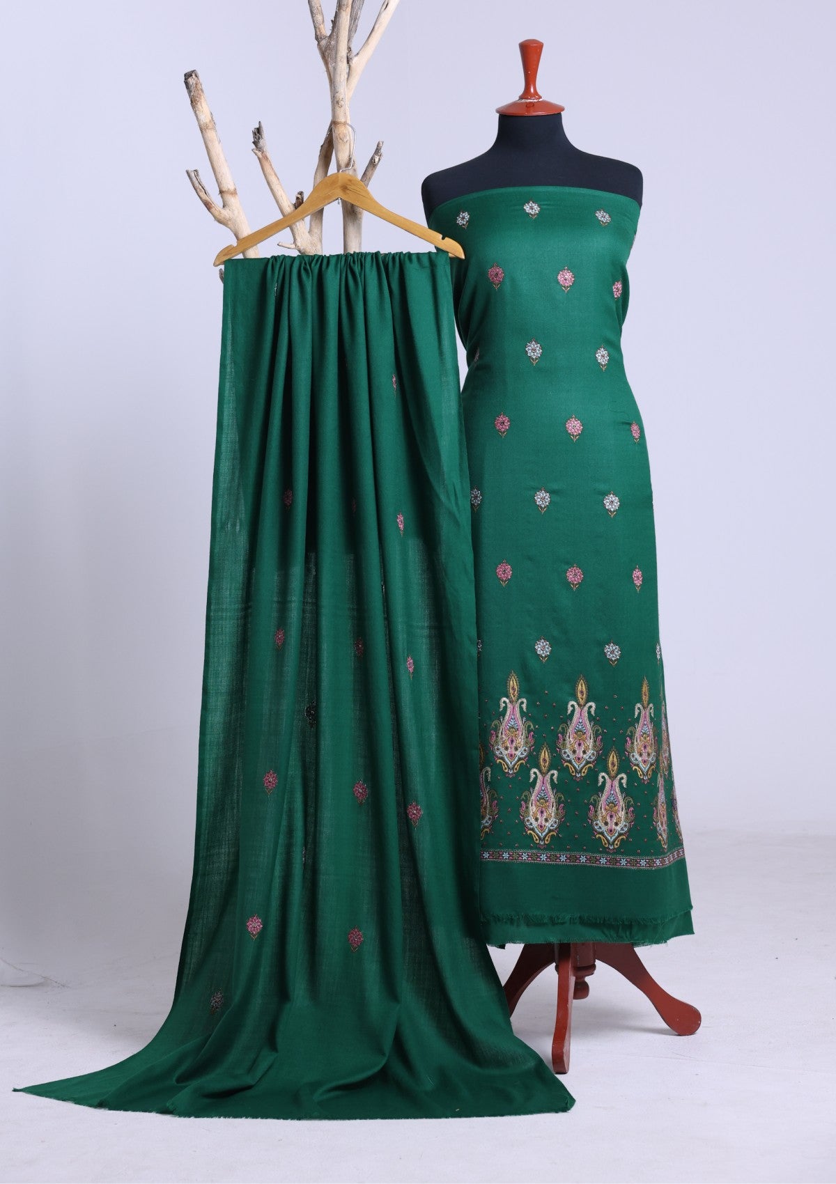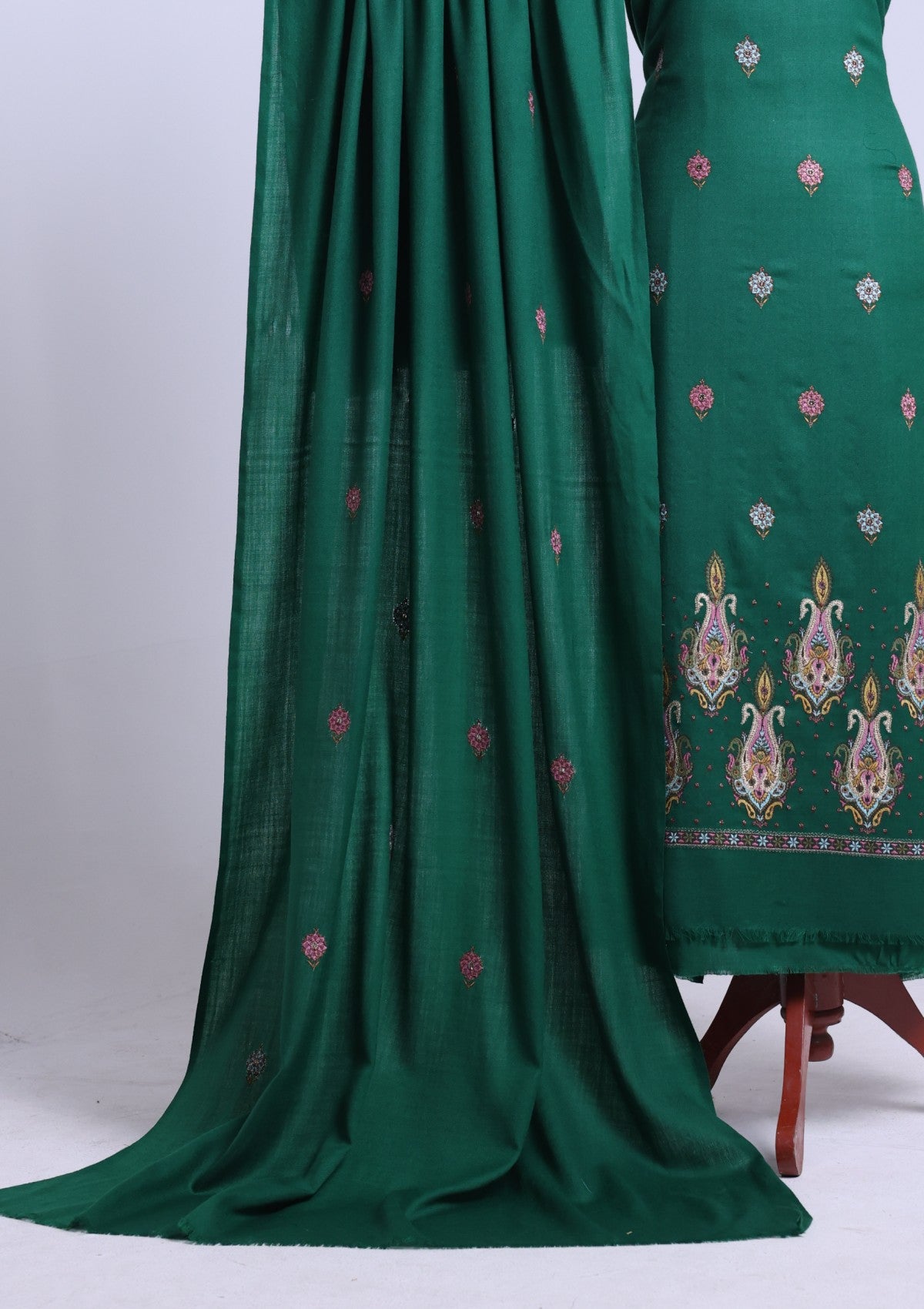 Winter - Riwaj - Pashmina Embroidered Suit - D#09 - D Green