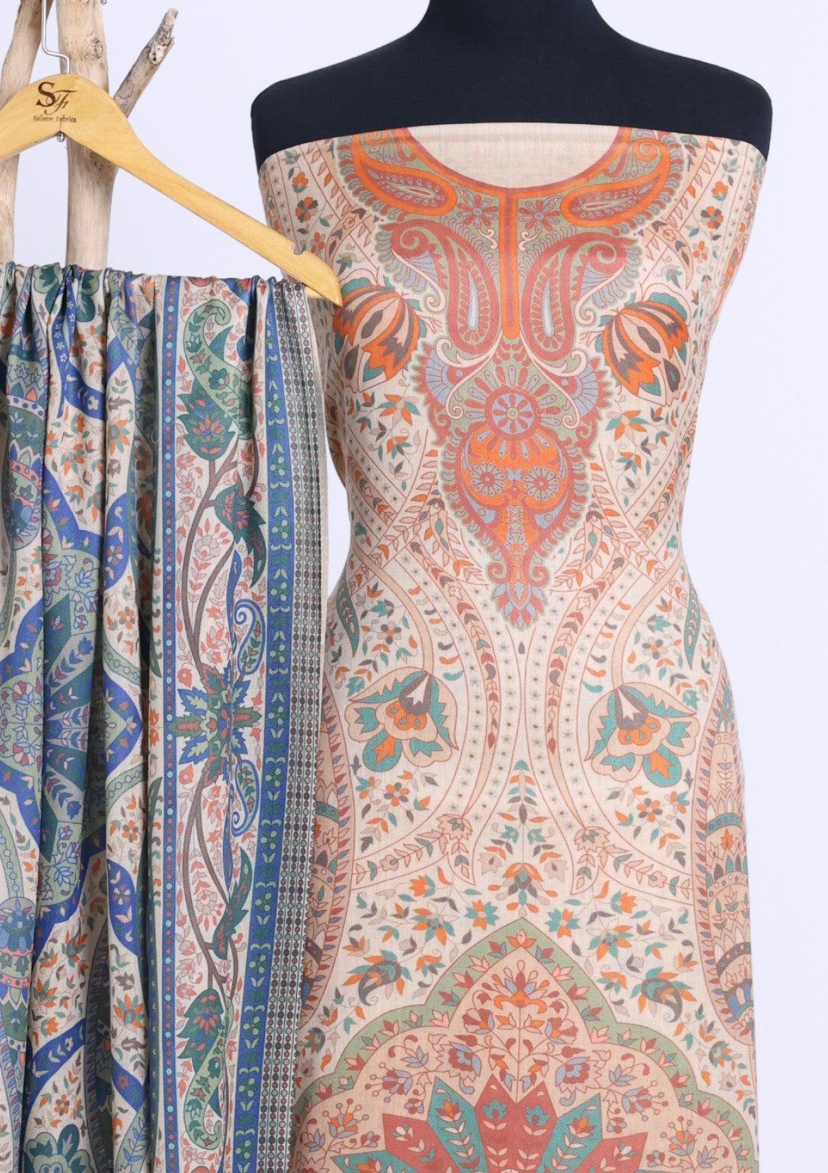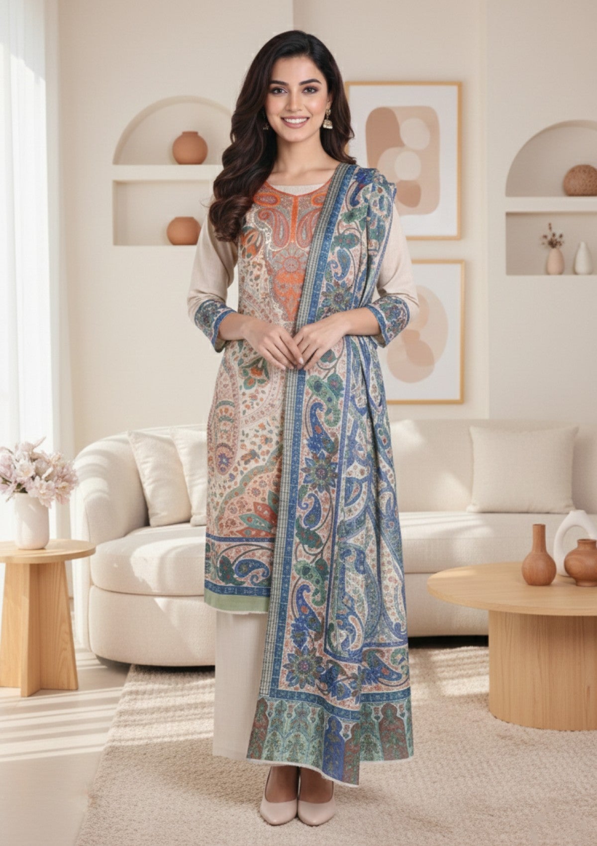 Winter - Riwaj - Printed Pashmina - 3 Pcs Suit - D#05 - L Peach