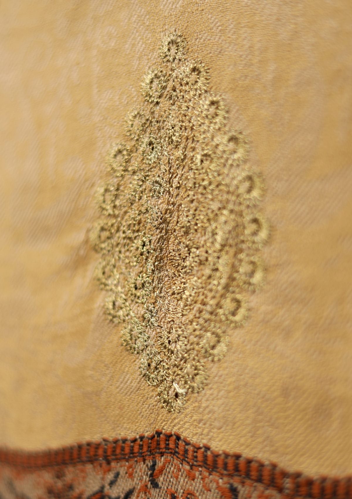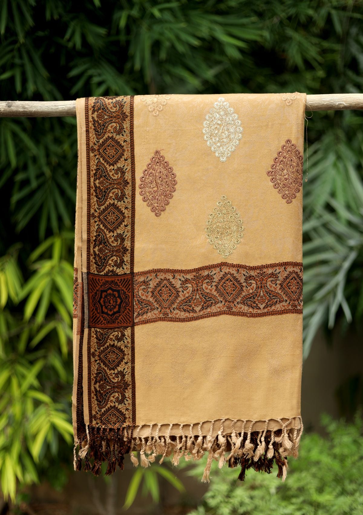 Embroidered Wool Shawl D - 60 - Beige