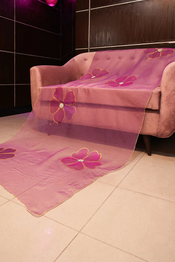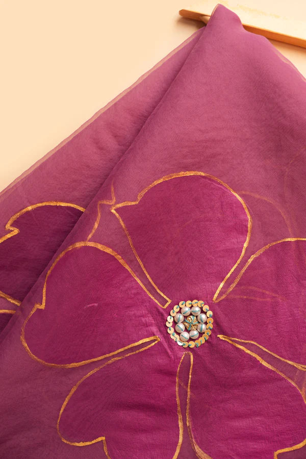 Presenting our stunning Pink Pearl Floral Handpainted Dupatta, a work of art that personifies refinement and grace This elegant dupatta is a timeless addition to your wardrobe. It is adorned with beautiful handpainted blooms with lovely violet blossoms. Our Pink Pearl Floral Handpainted Dupatta, made with meticulous care and attention to detail, emits a magical allure that will enchant anyone who sees it. The deep, royal violet shade is not only universally flattering but also lends a dash of glamour to any outfit.
