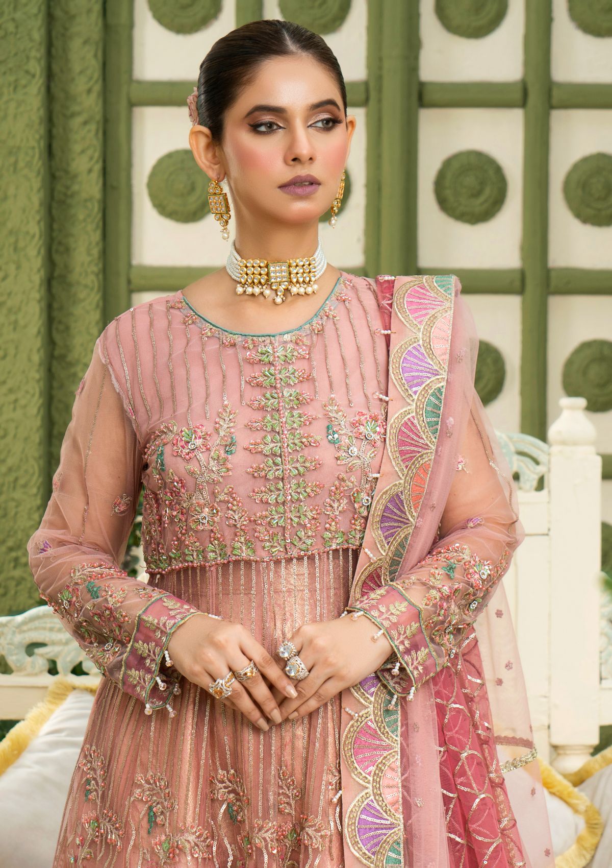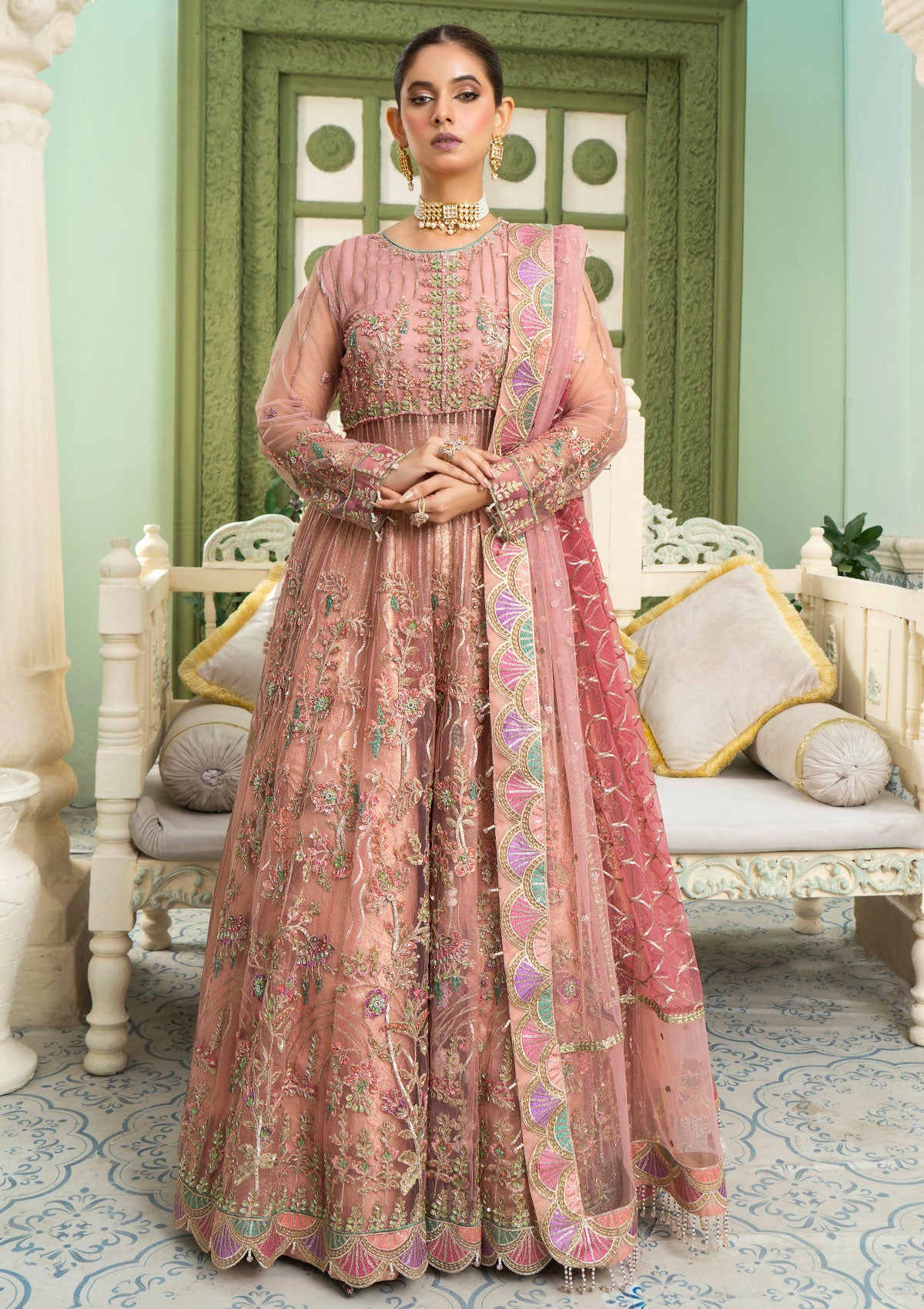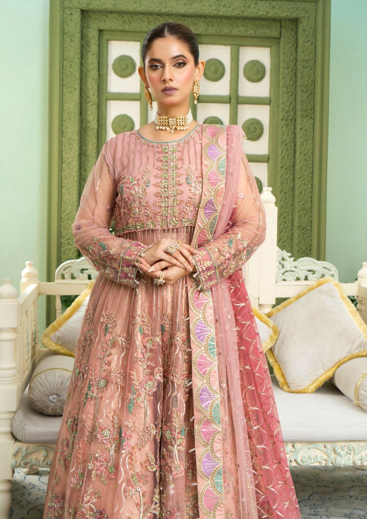 •  NET EMBROIDERED DUPATTA READY TO WEAR.