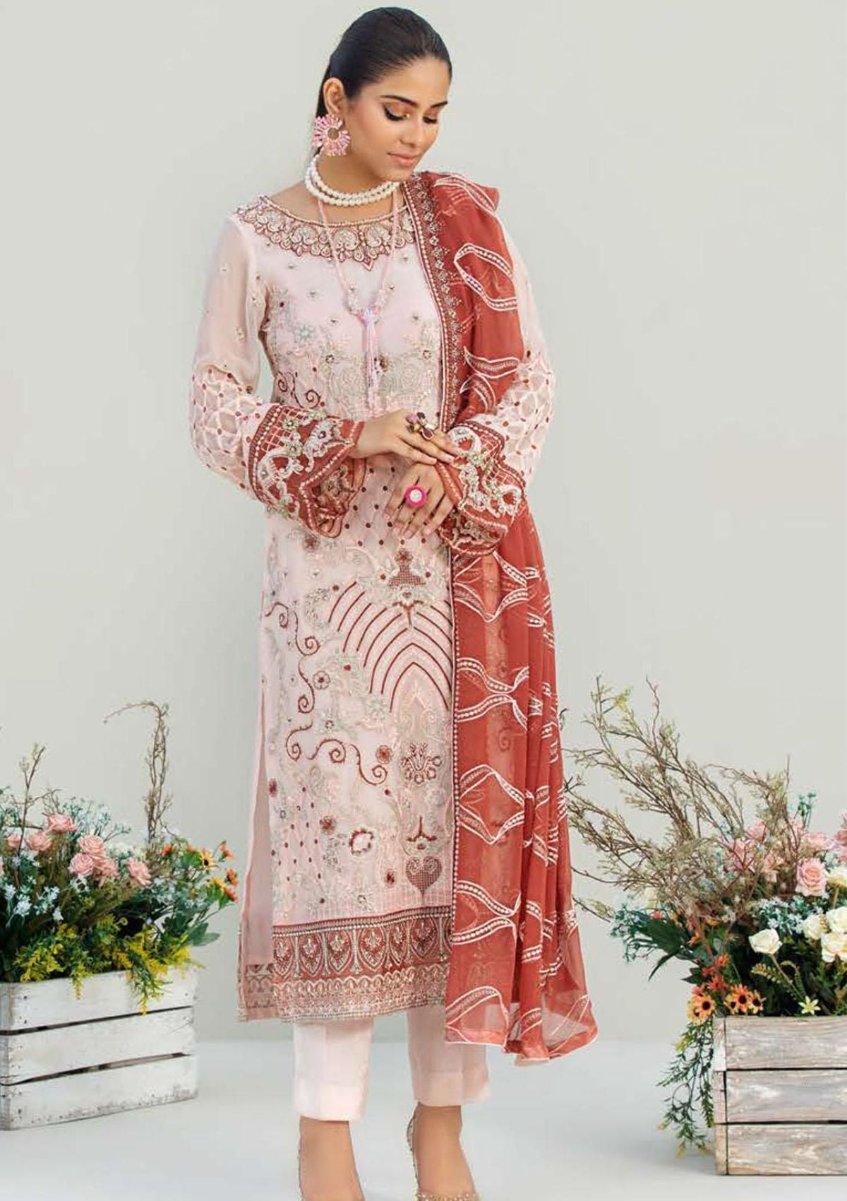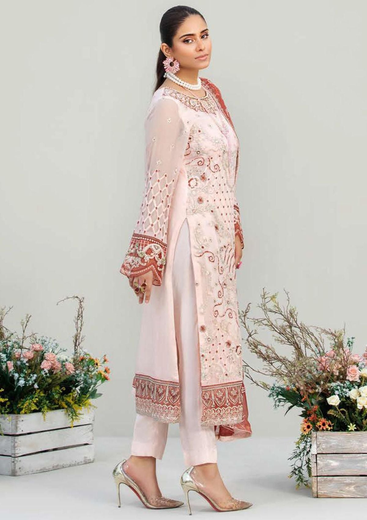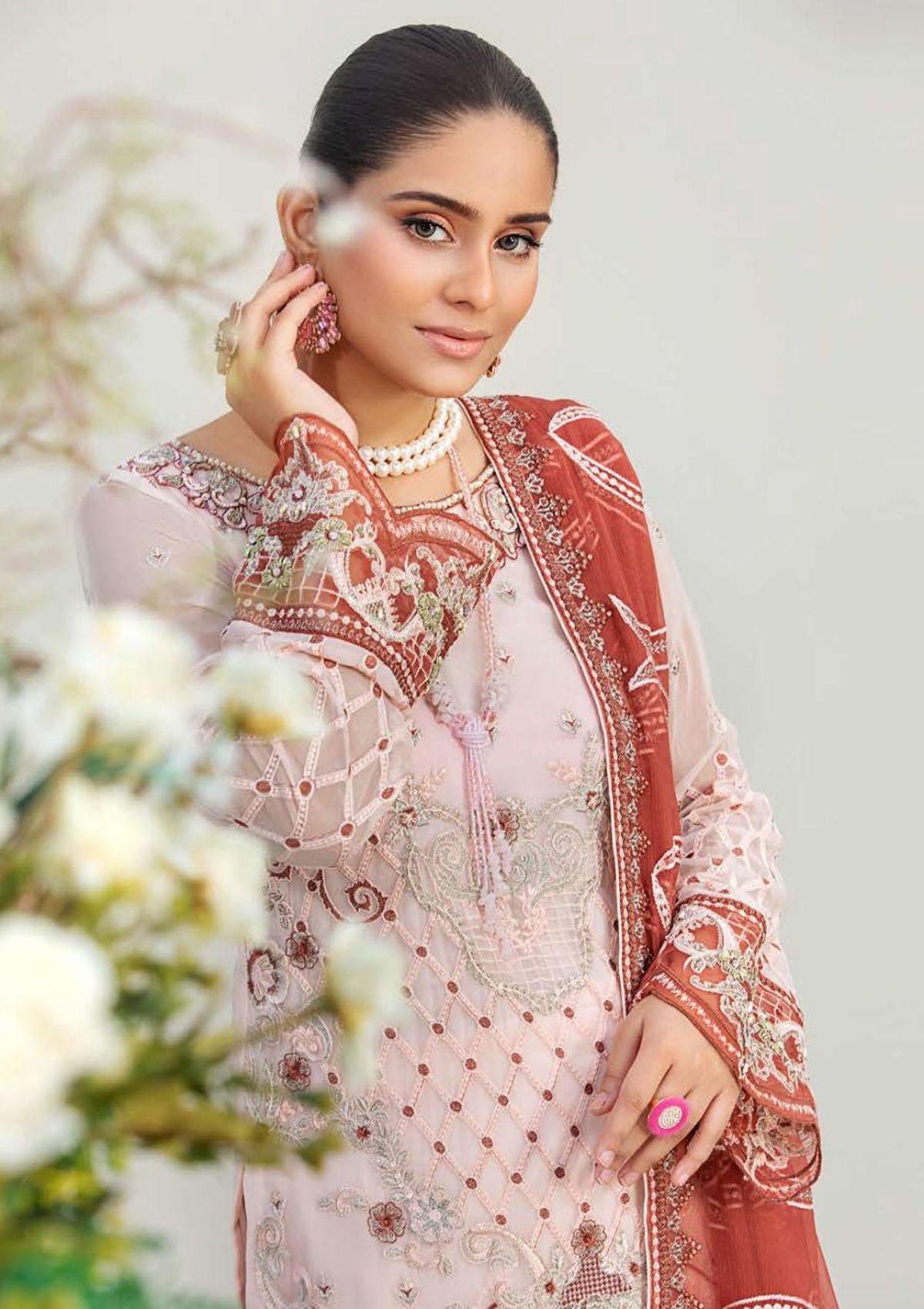 • Organza Embroidered Handmade Neckline