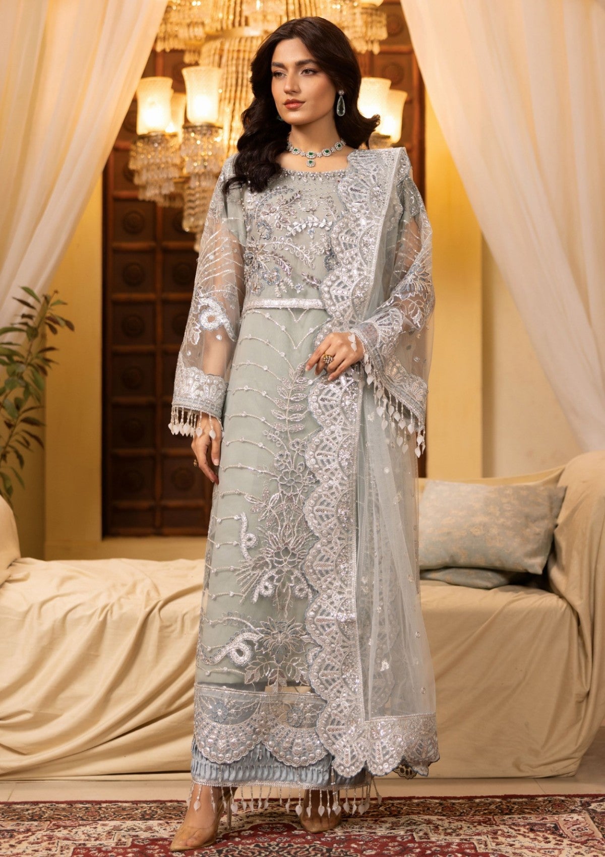 • Net Organza Embroidered Dupatta Hand Embelished 2.5 Yard Ready To Wear