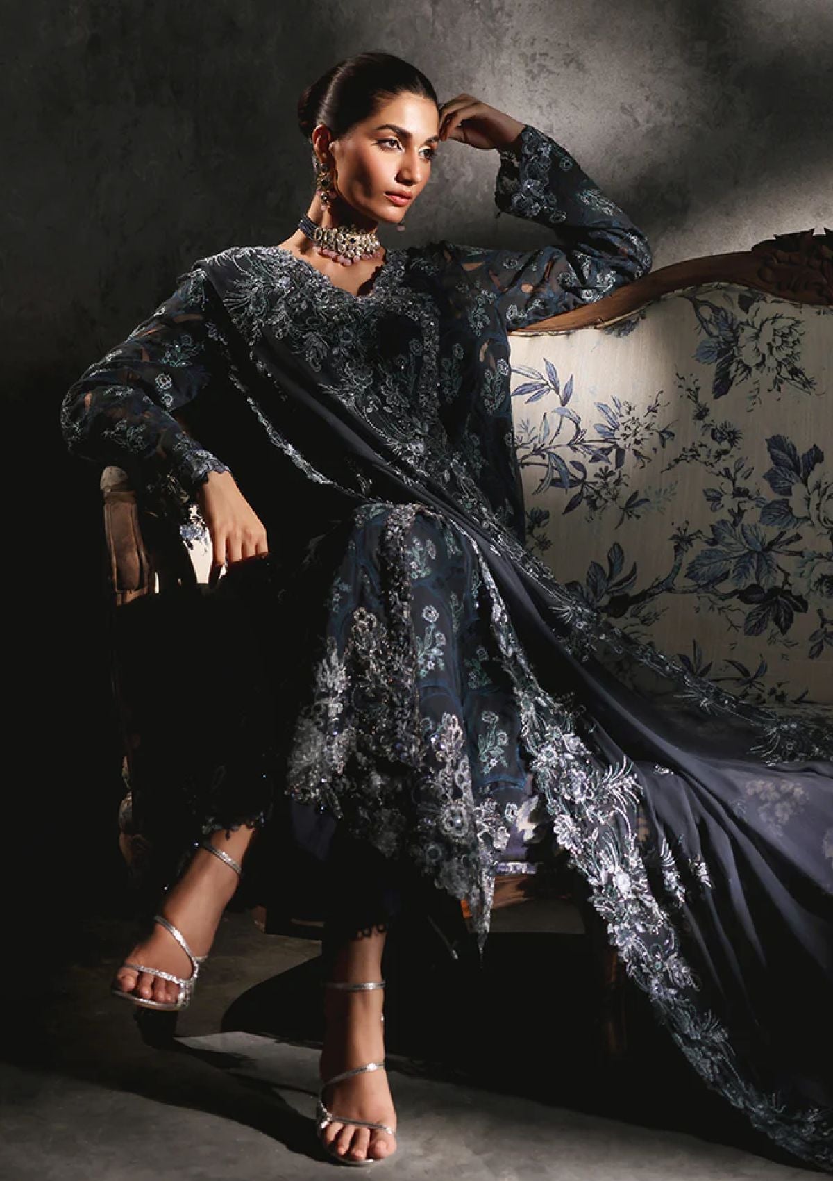 • Sequin Embroidered Bamber Chiffon Back