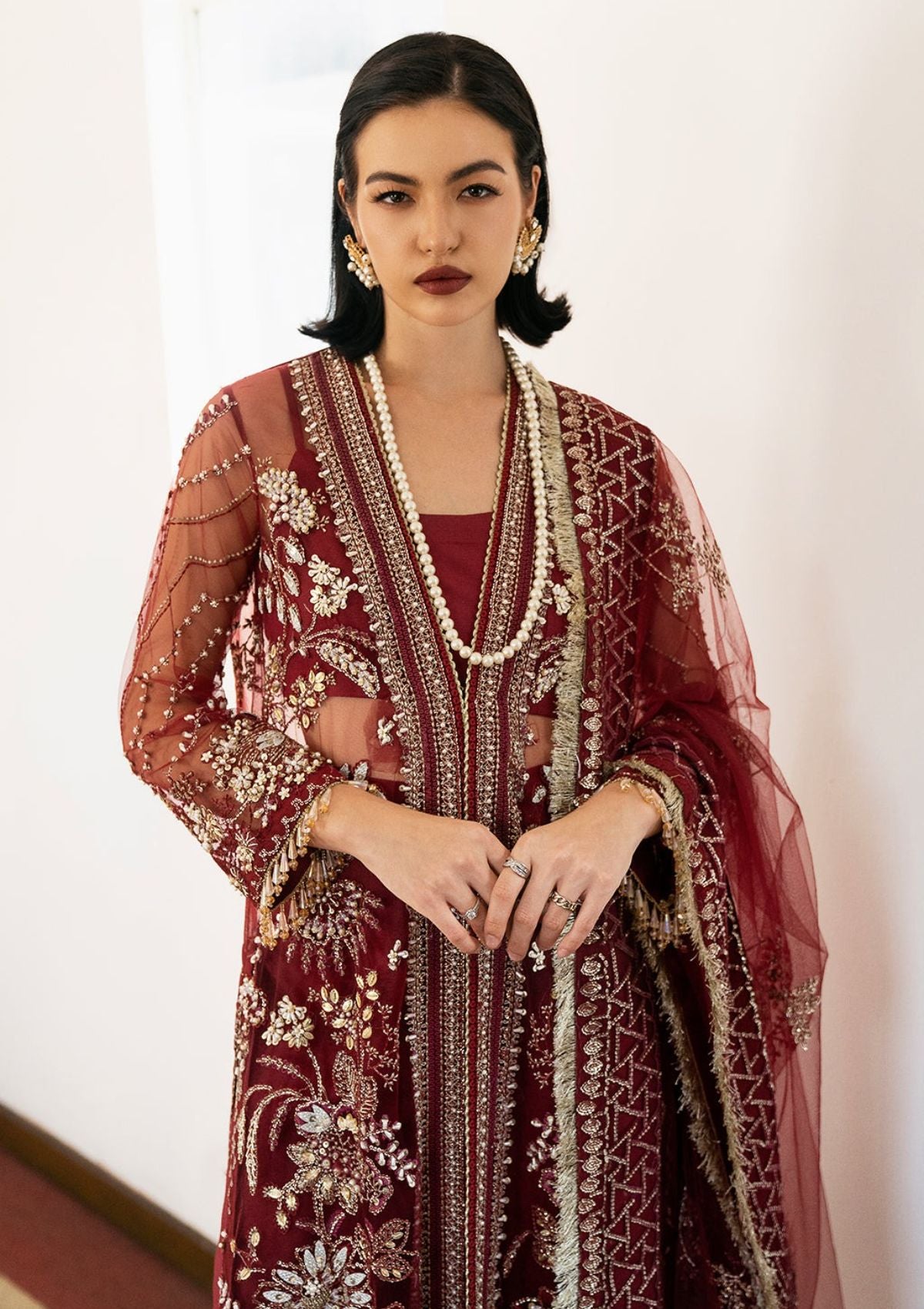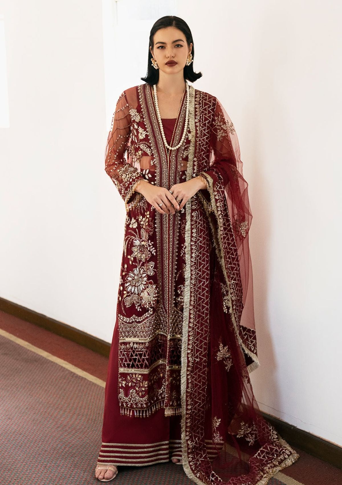 Embroidered Front Side Right & Left Panel On Net 2 Pieces