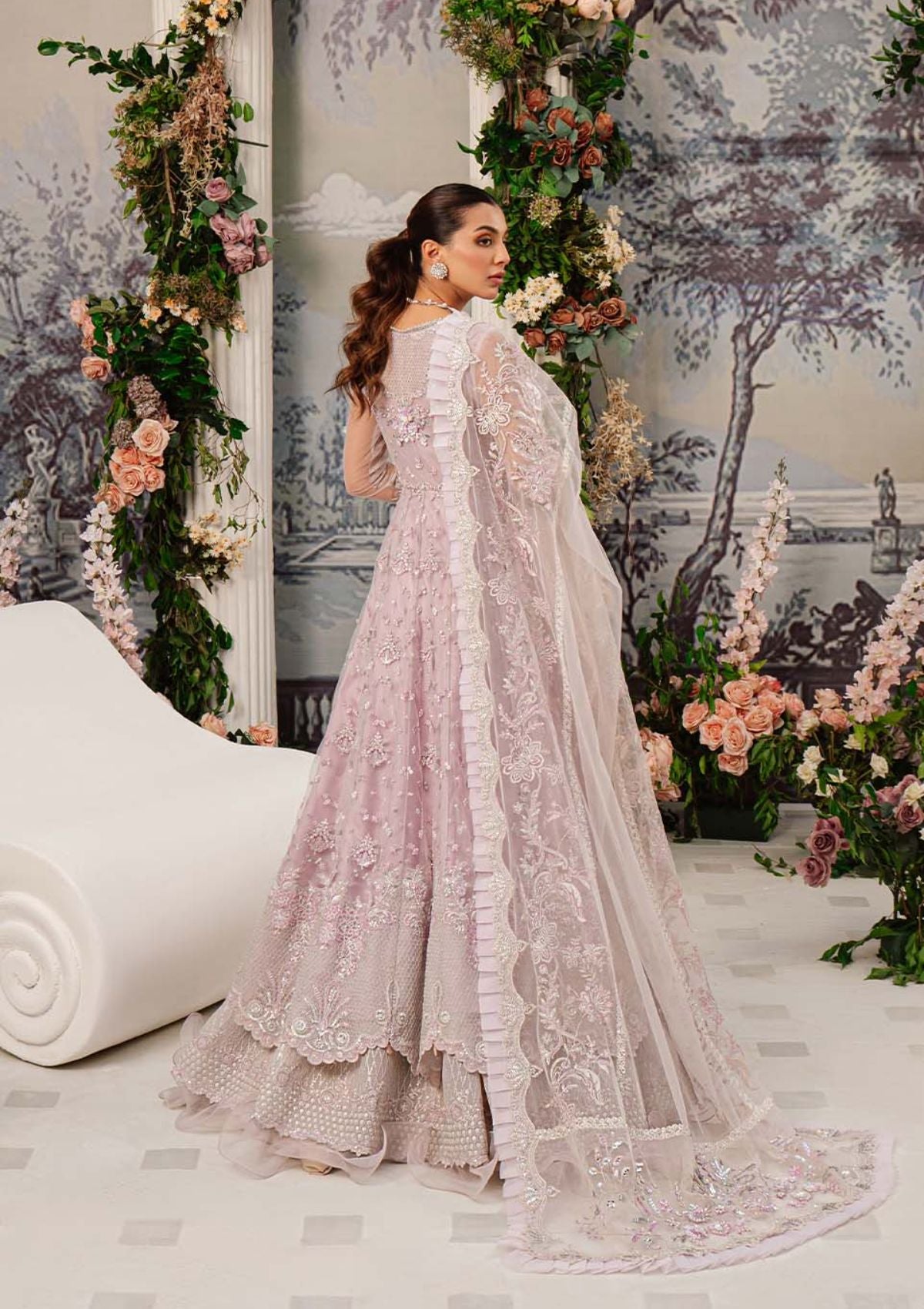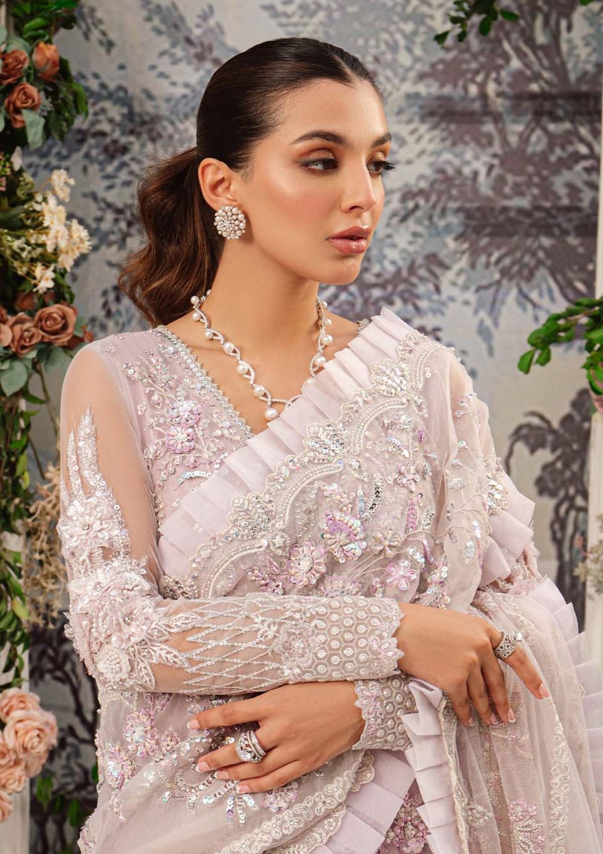 Re-vision glamour with this stunning panelled dress,featuring a beautifully embroidered layered and panelled lilac rawsilk skirt. 14 exquisitely embroidered panels comes together to create a spectacular long dress, with a fully composed bodice, delicately embellished with a mélange of shimmering silver and li lace sequins, pearls, sparkling crystals, stones and 3d embroidered motifs. The dreamy organza dupatta features intricately embroidered borders and elaborately worked pallus making it a show stopper that sure to captivate. This couture like ensemble is a collectors dream, classic, elegant and timeless.Disclaimer: The color of the outfit may vary due to the lighting effect used in the photography.