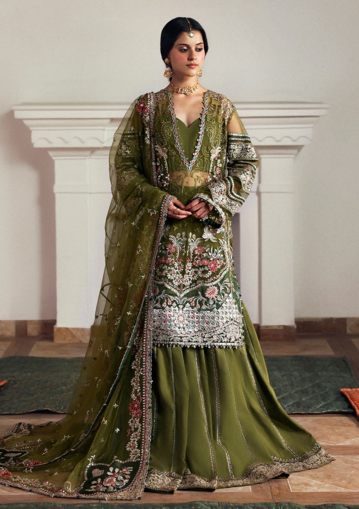 • OLIVE NET EMBROIDERED FRONT+BACK SIDE PANELS (4 PCS)