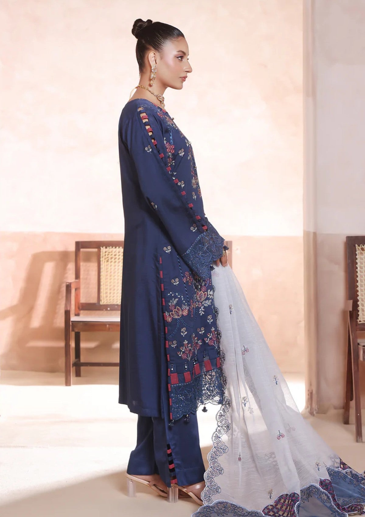 • Shirt: Luxury Chiken-Kari Embroidered Bana Dora Viscose — a masterpiece of intricate craftsmanship.