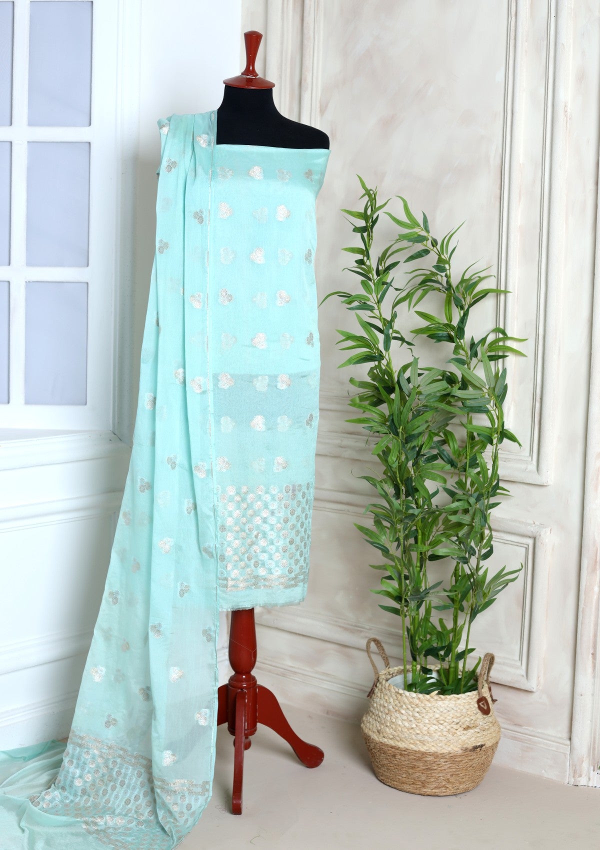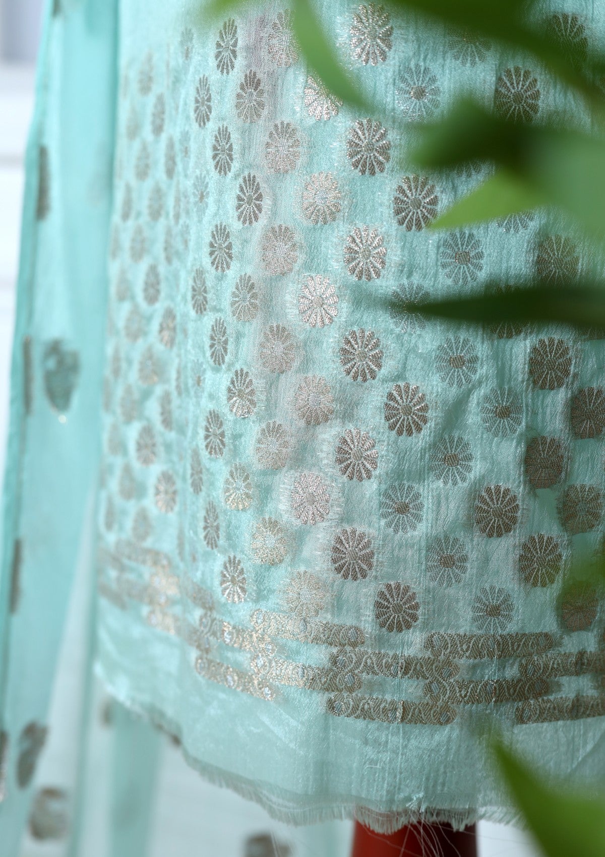 Formals - Fancy Closet - 2 pcs Suit - Satin Silk Jamawar D#04 Ferozi