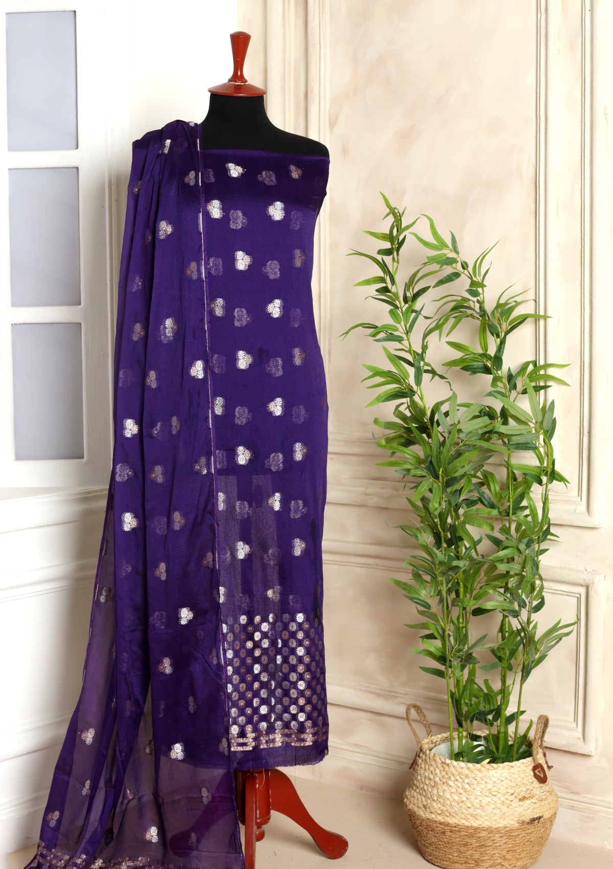 Formals - Fancy Closet - 2 pcs Suit - Satin Silk Jamawar D#04 R Blue