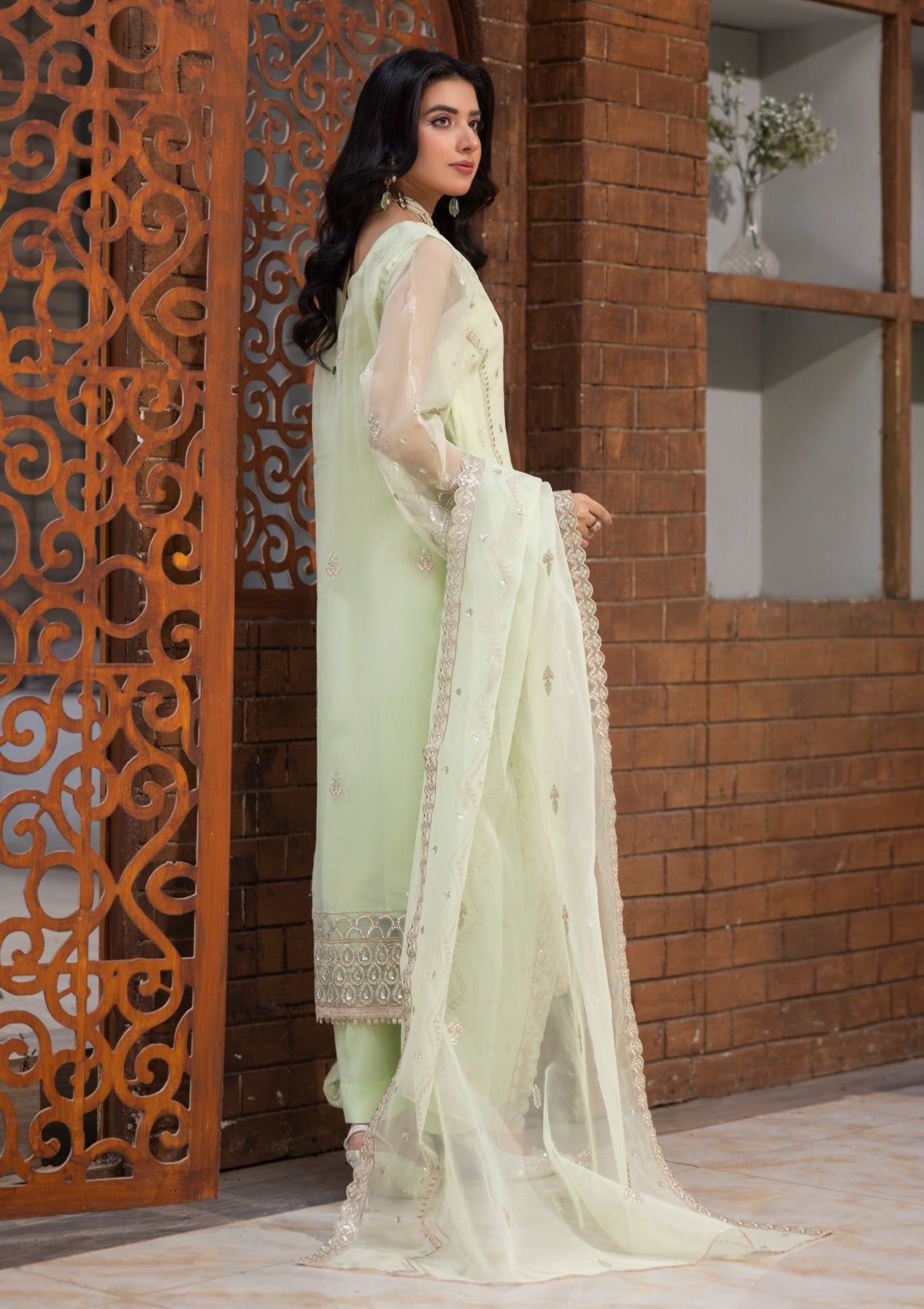 • EMBROIDERED ORGANZA DAMAN BORDER FOR FRONT & BACK