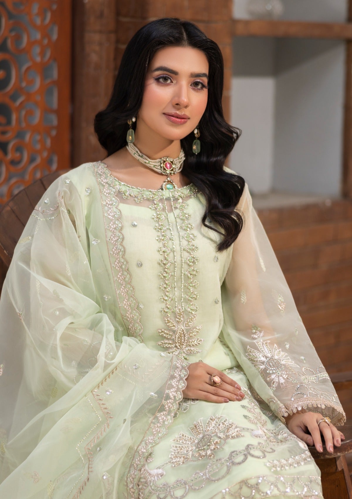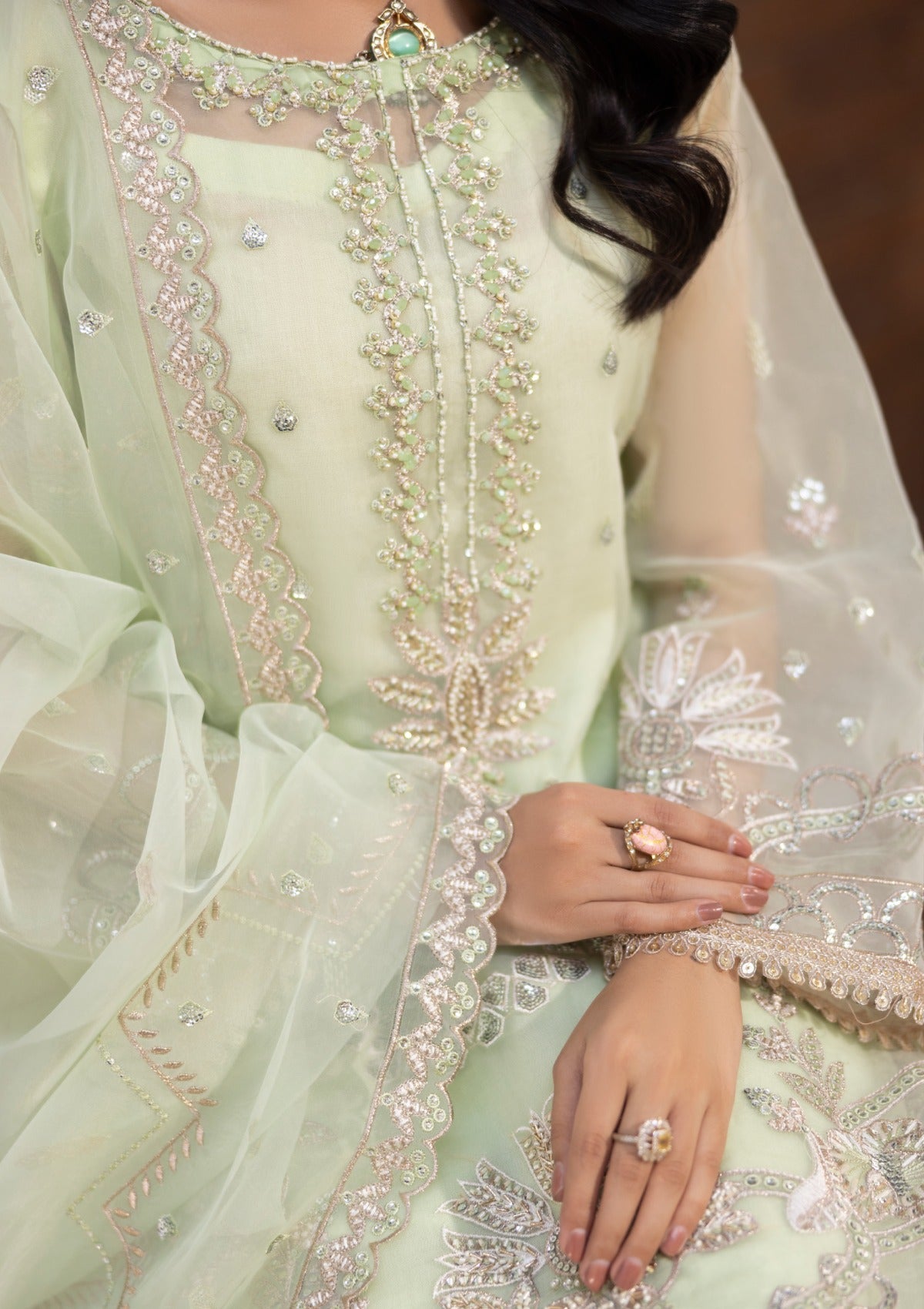 • HEAVY EMBROIDERED ORGANZA FRONT WITH FANCY HAND EMBELLISHMENT