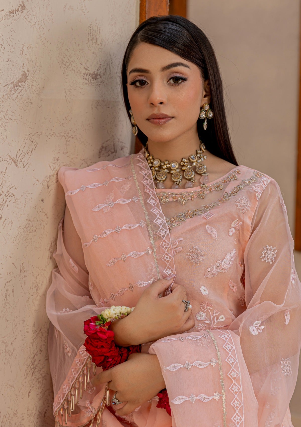 • HEAVY EMBROIDERED ORGANZA FRONT WITH FANCY HAND EMBELLISHMENT
