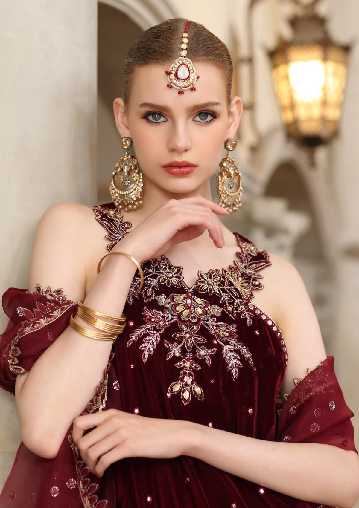 • Hand embellished & Panni embroidered velvet front.center and side panels