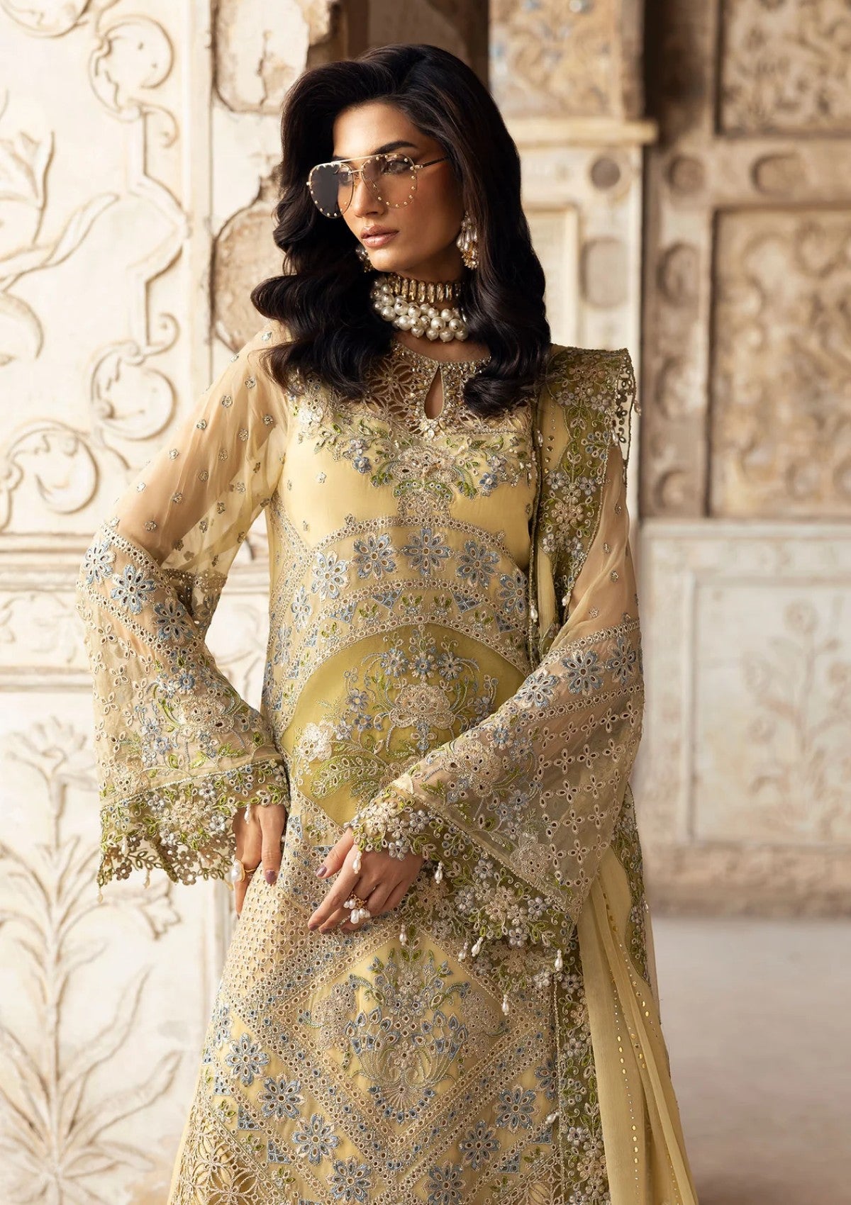 Embroidered Organza Front Neckline With Luxury Hand Embellishment & Cutwork Embroidered Organza Front Center Motif