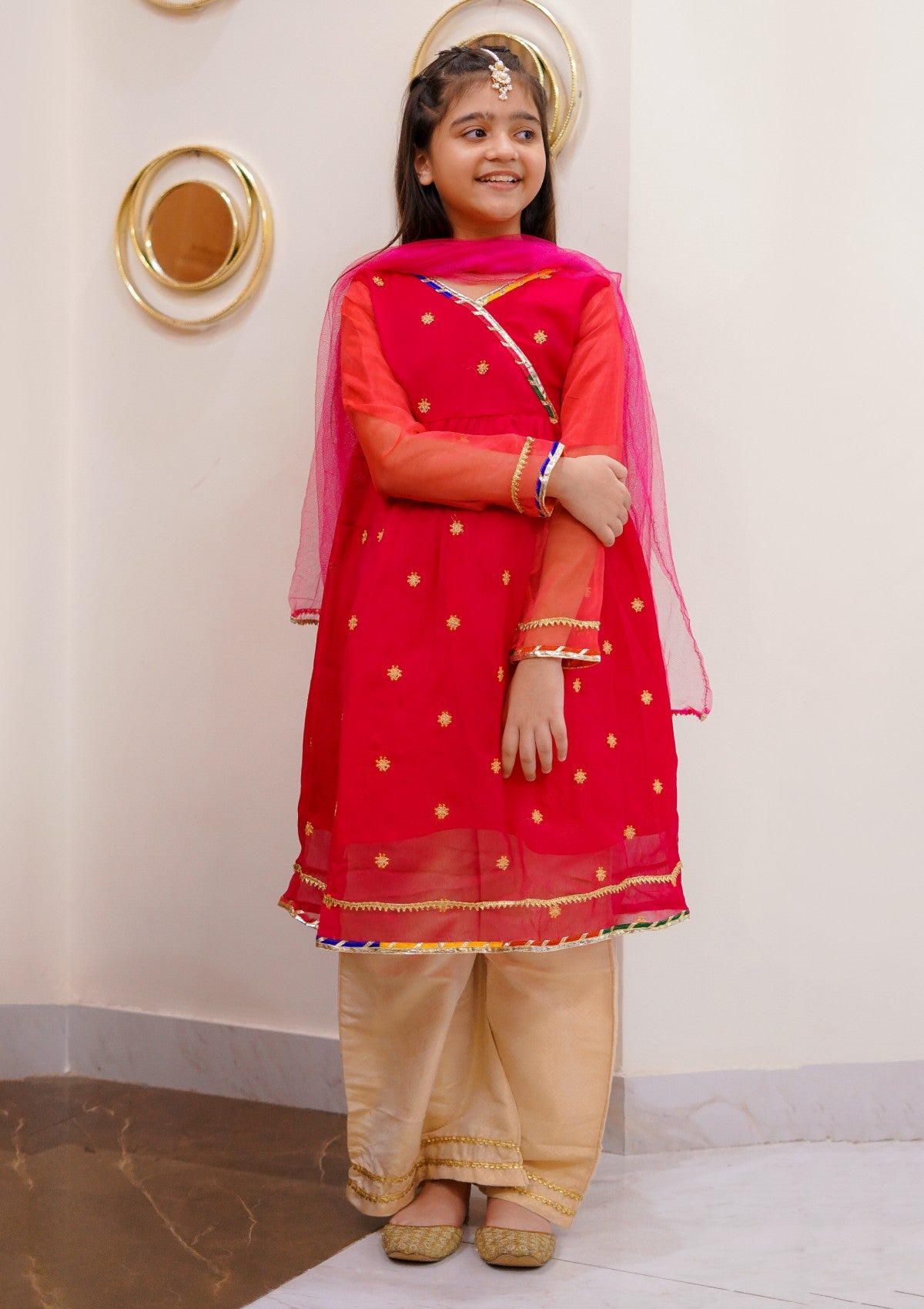 This exquisite outfit features a delicate moonlight organza shirt, shimmering with ethereal translucence. Paired with a silver grey tissue organza lehenga adorned with golden touches and intricate lace details, it exudes timeless graceand festive allure, perfect for special festive occasions.