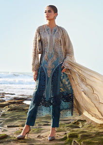 Prepare to be visually captivated – this is Eden! 💙 Obsessed with blue hues? Then get ready to meet your match! 😍 The deep, deep blue printed canvas is just breathtaking, especially with the shades of light blue resham thread embroidery! That chikankari embroidered shirt in light sky blue thread? So delicate and dreamy! And the organza cutwork style embroidered border? Pure sophistication! The printed sleeves with their embroidered borders are just perfect. Finished with dyed cambric trousers boasting an organza insert patti and a luxurious printed silk dupatta, Eden is the ultimate blue beauty to upgrade your summer wardrobe.