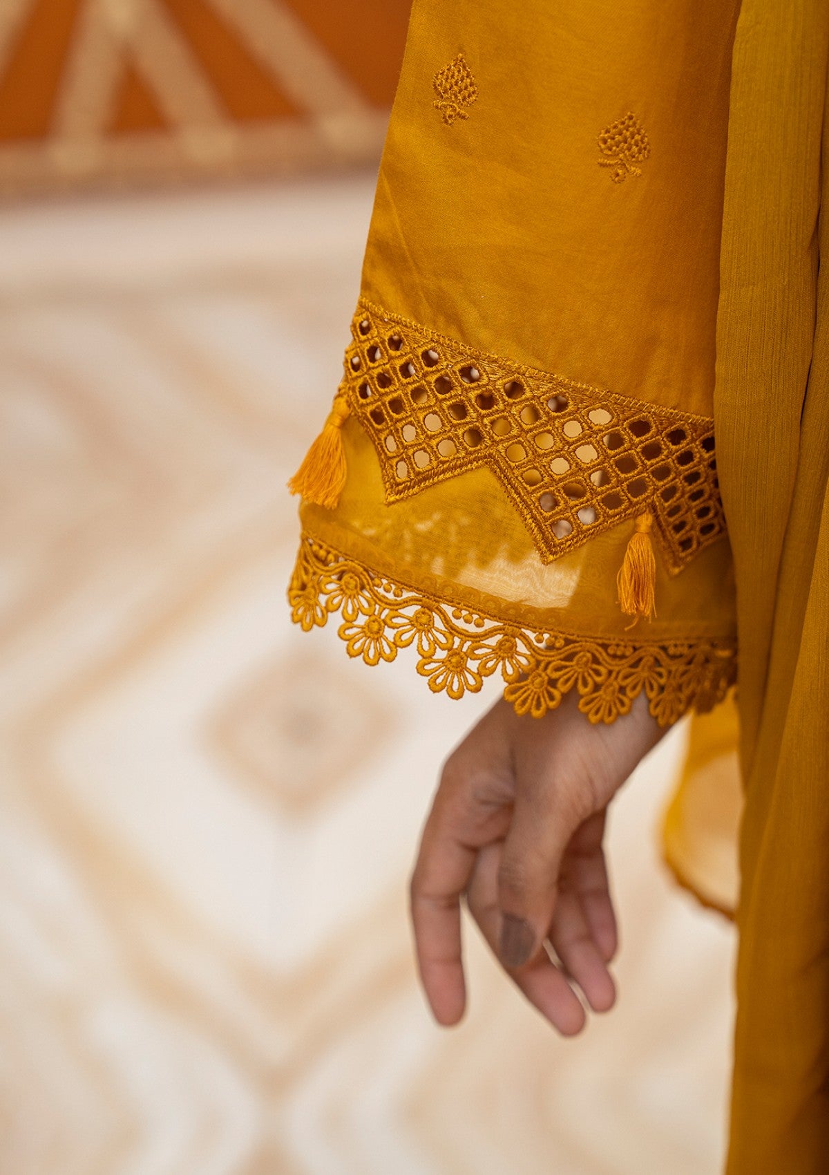 Dyed Lawn front, Sleeves &- Back schiffli Embroidered