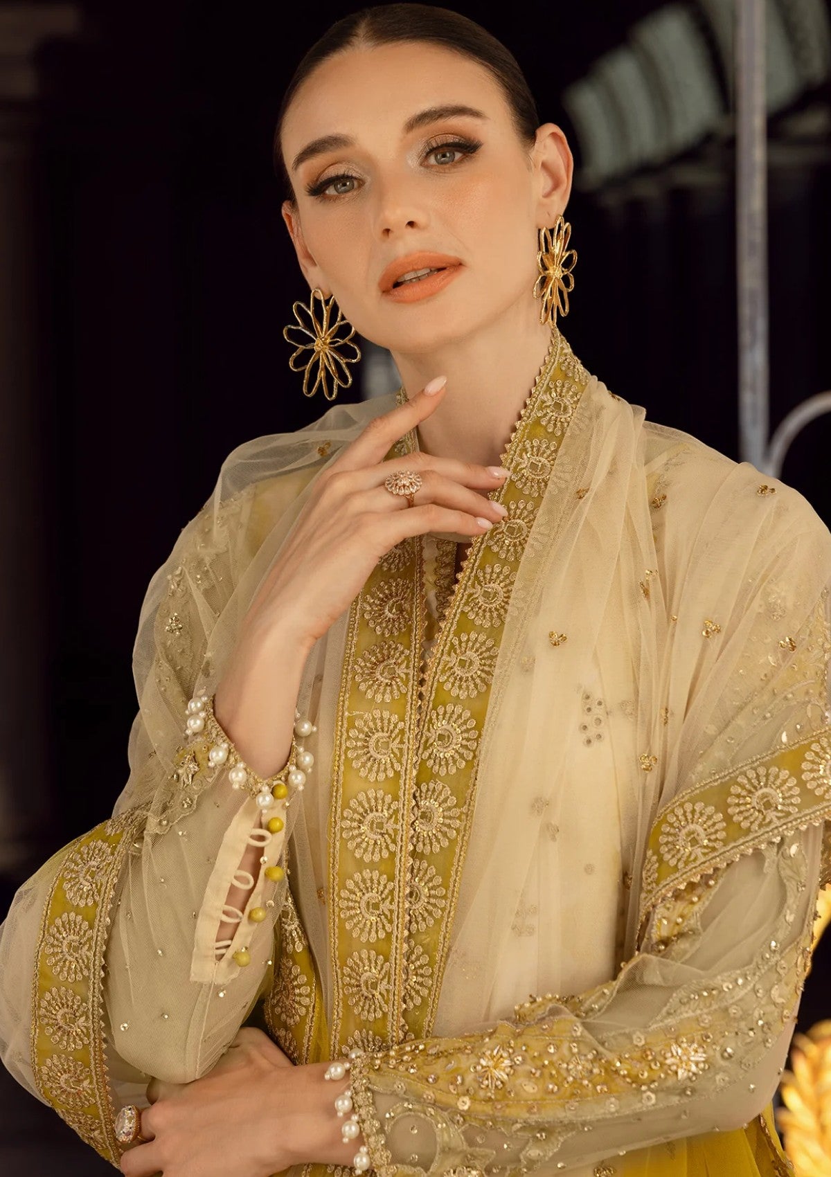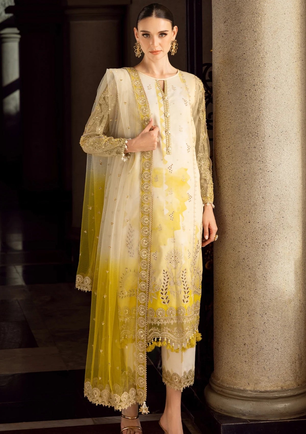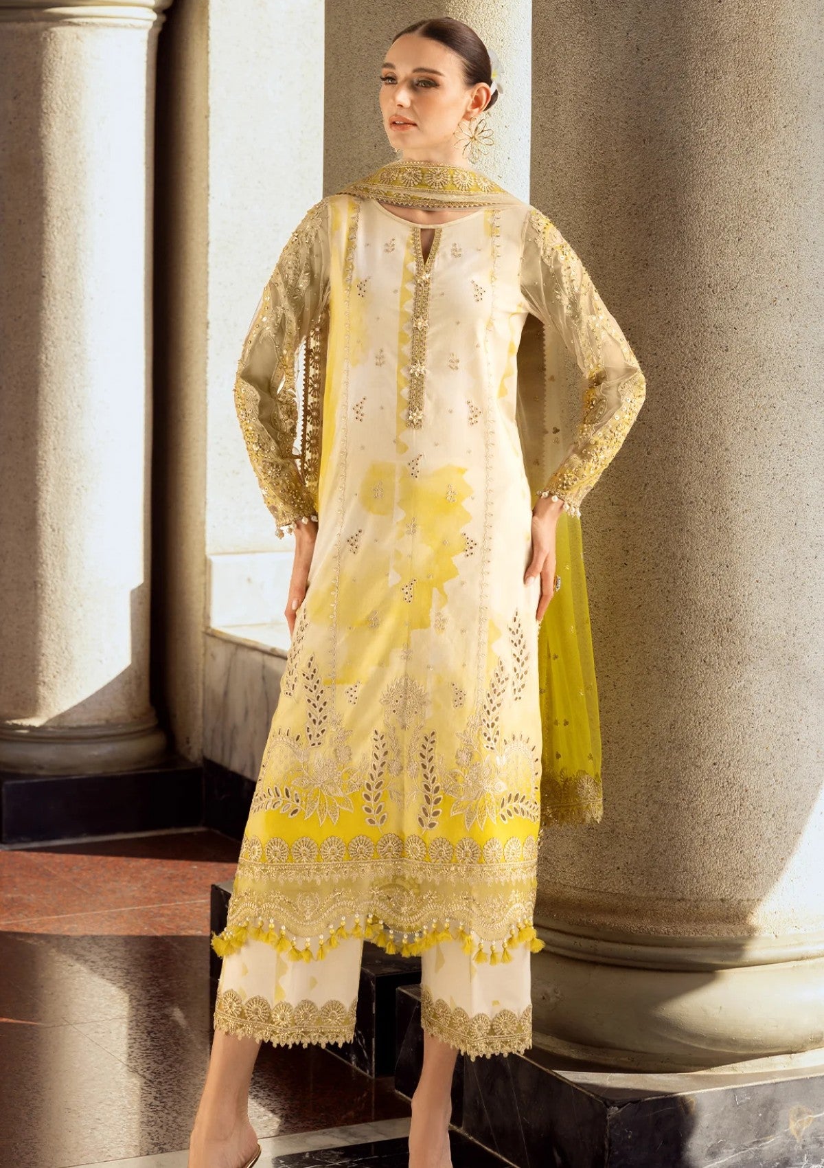 • Embroidery Trouser+Dupatta Pallu Patti 4 Meter