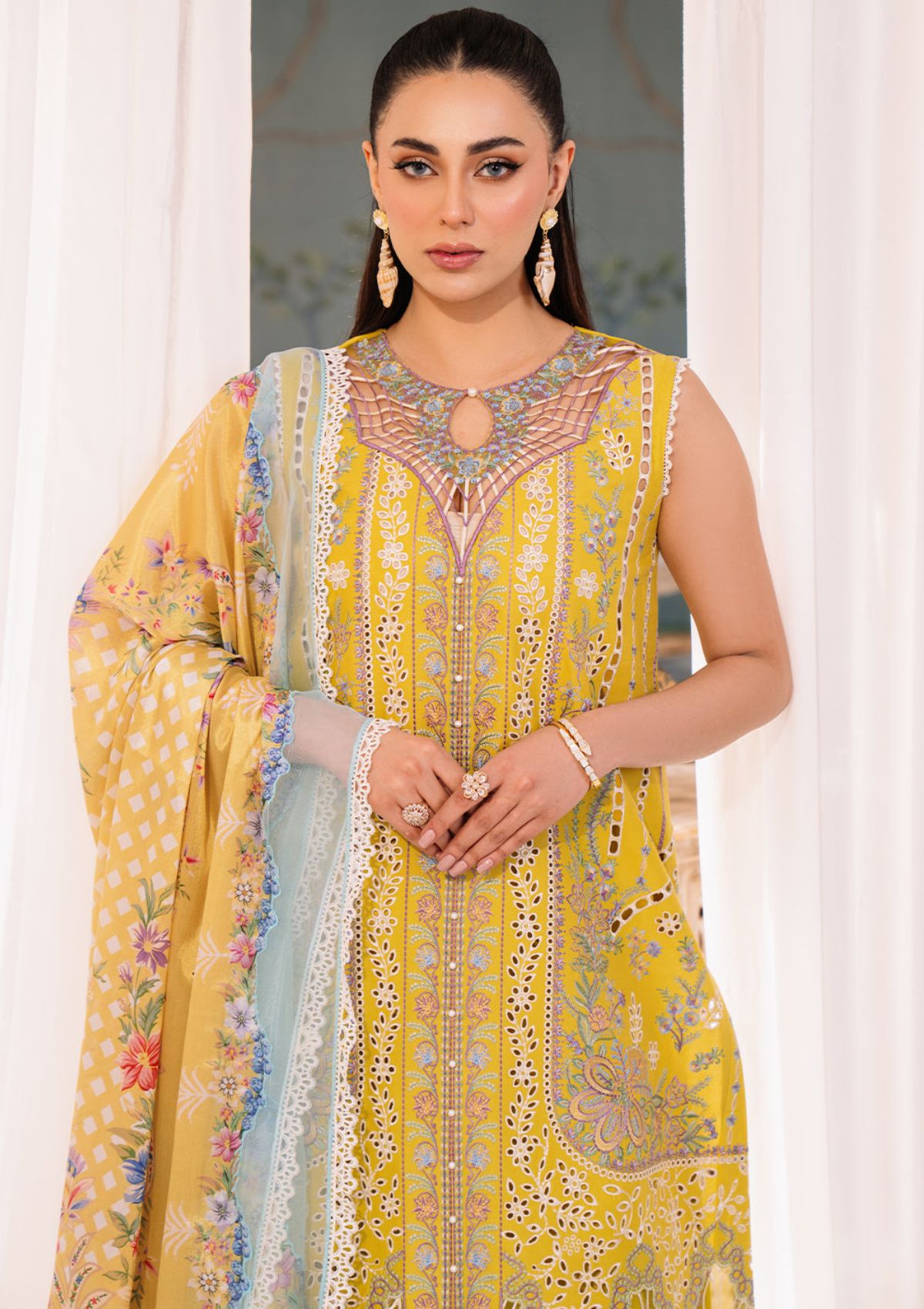 | Dyed Lawn Borer Embroidered Left Panel |