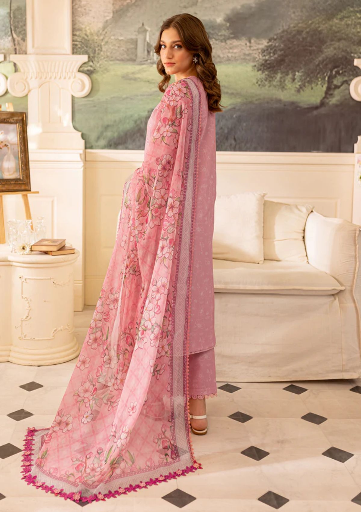 Embroidered Printed Lawn Back & Trouser (3.75 Meters)