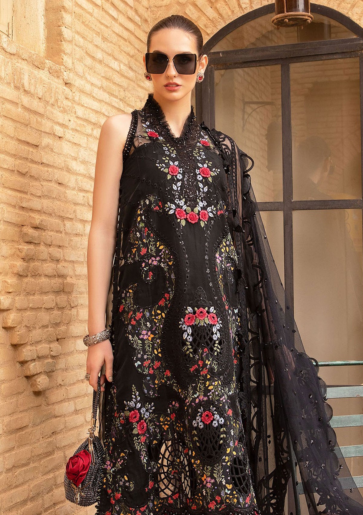 Embroidered Organza Center Panel With Printed Lawn Applique & 3D Ribbon Flowers