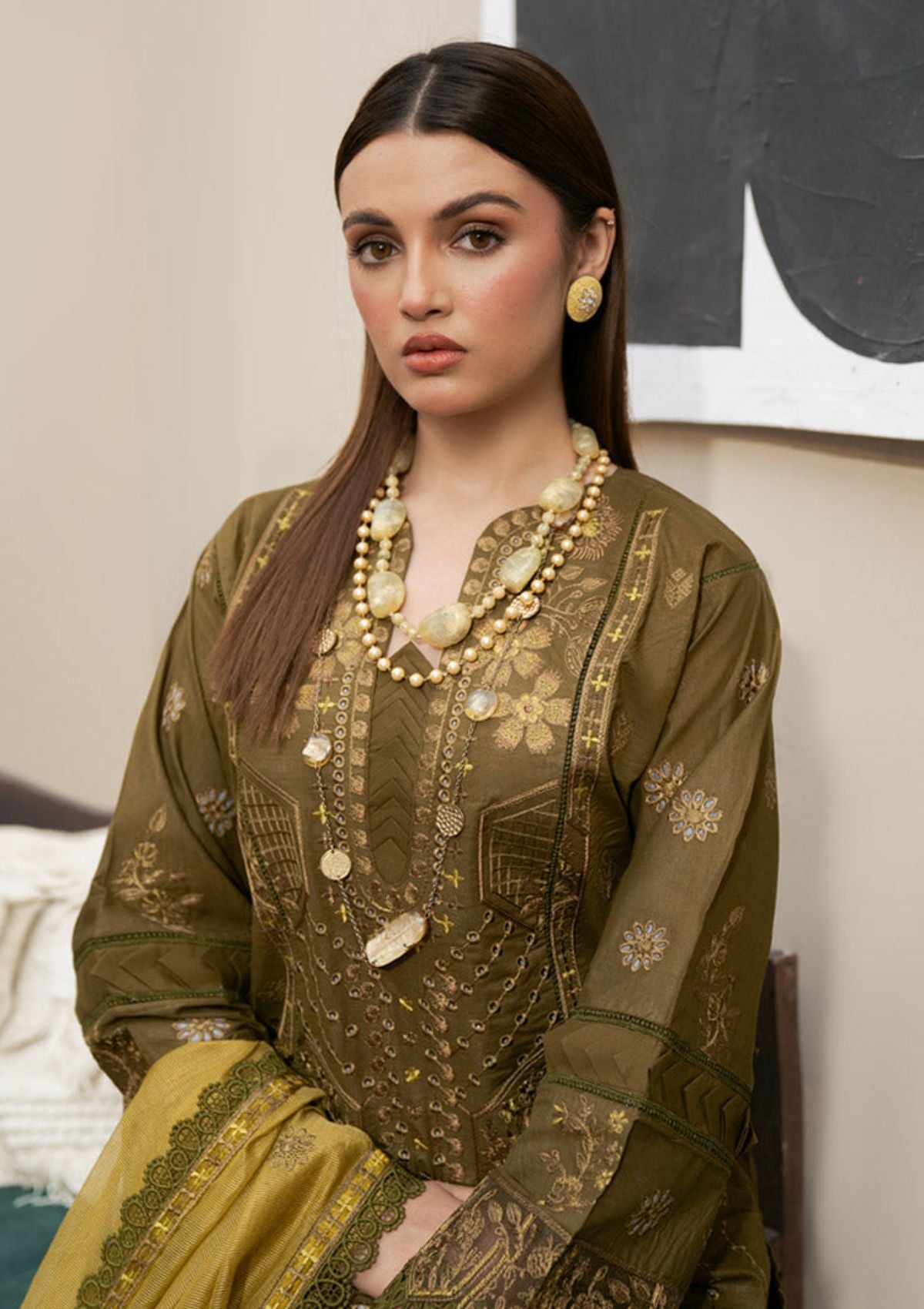 • DYED SLUB LAWN EMBROIDERED SLEEVES