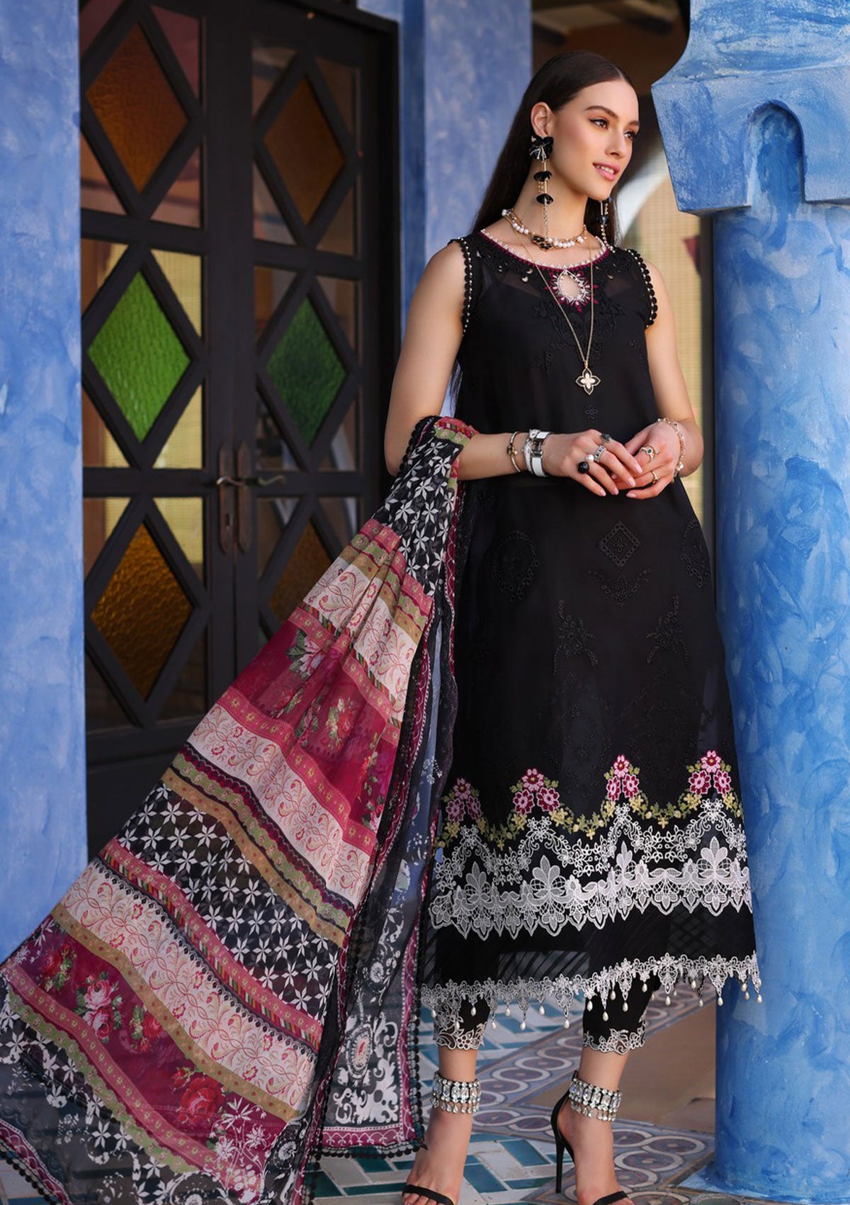 •  Schiffli Embroidered Lawn Front