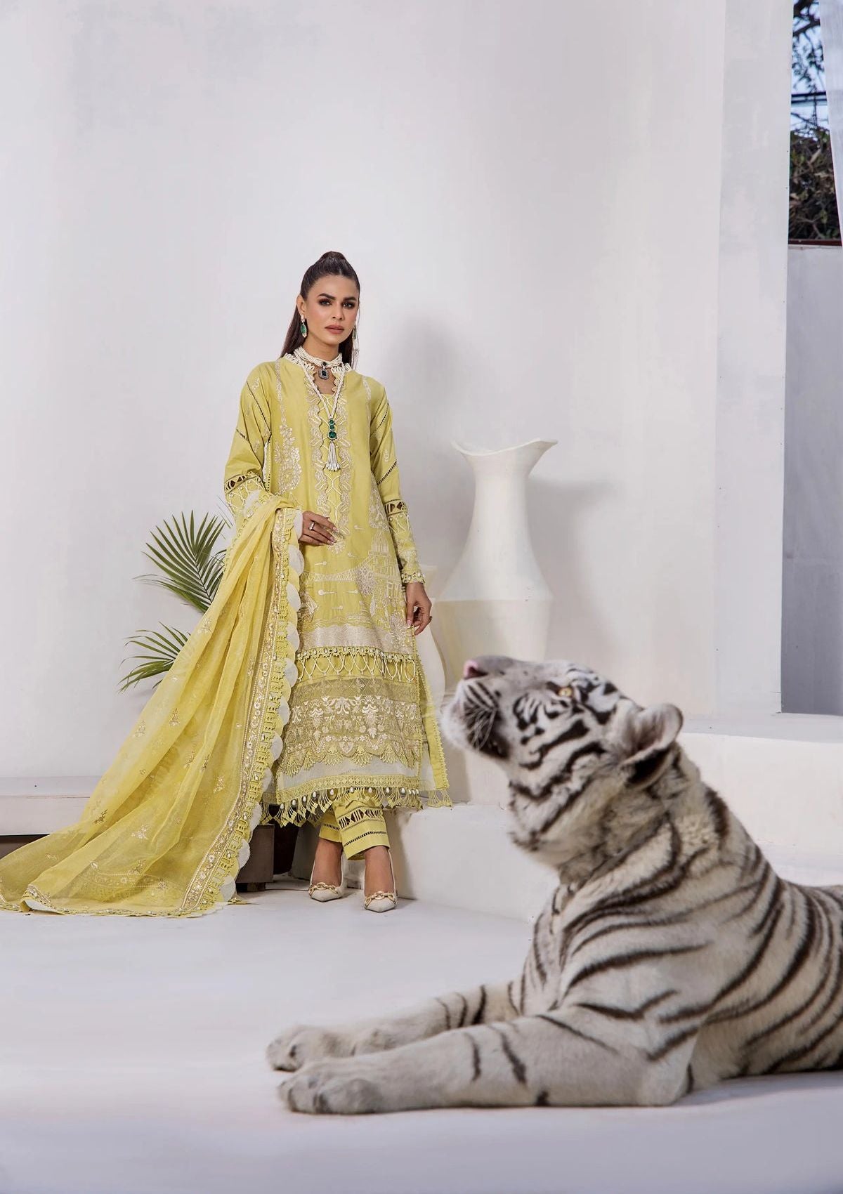 • Lawn embroidered sleeves border.