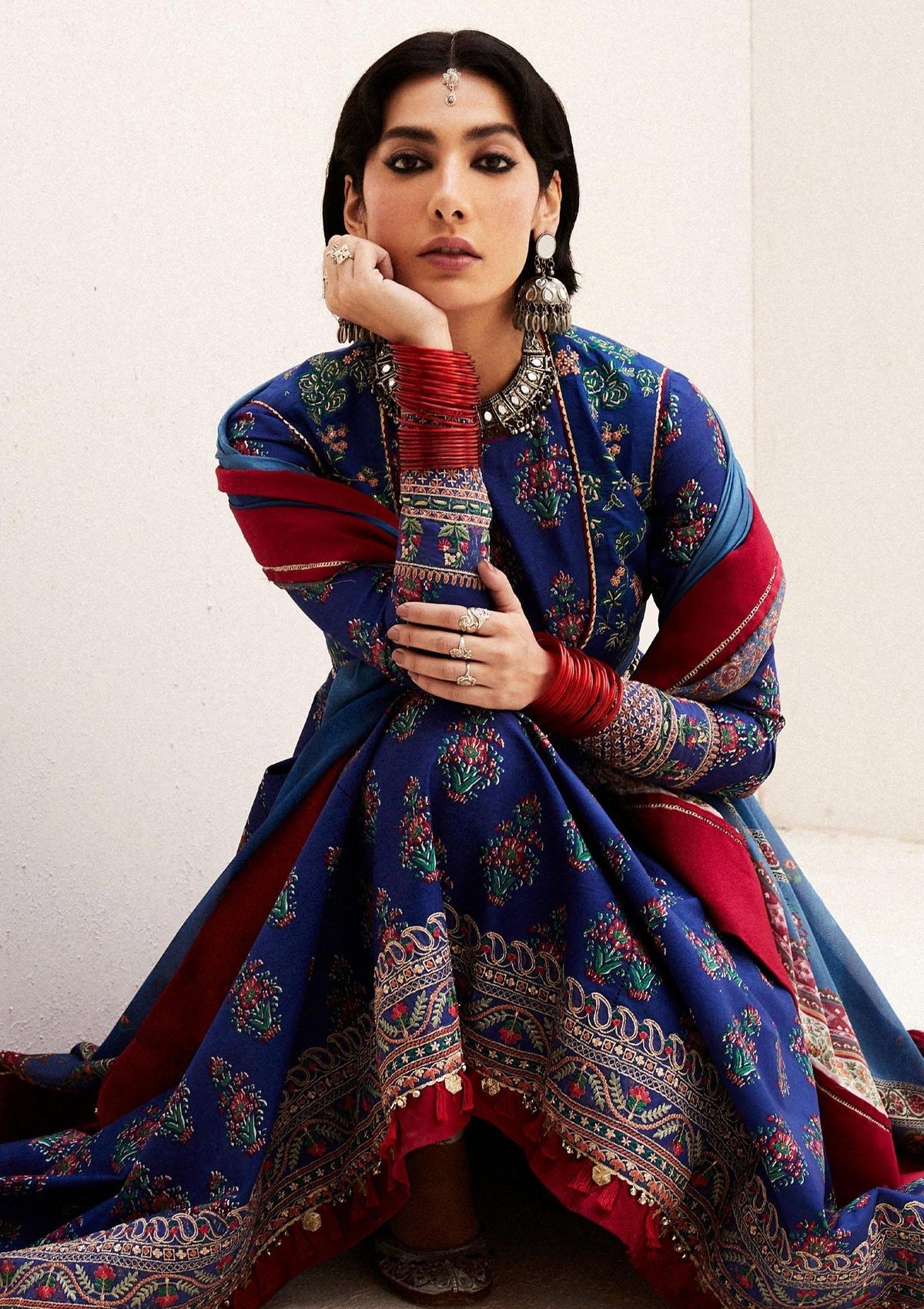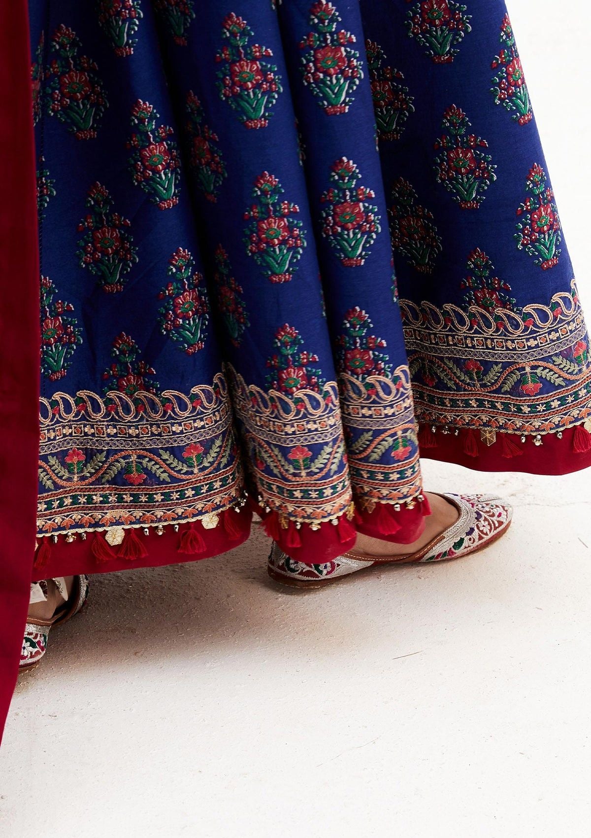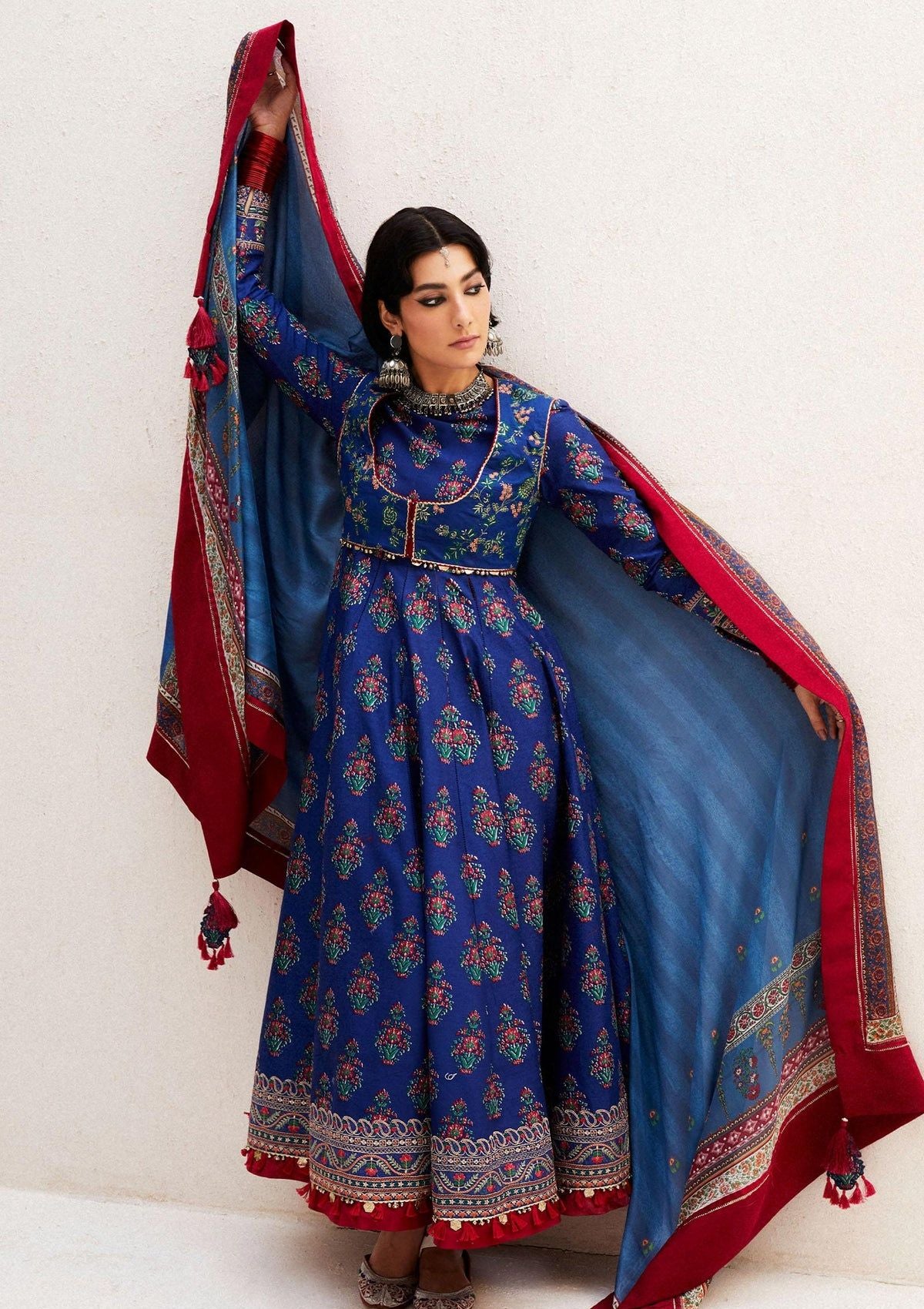 • Anarkali, the most opulent form of clothing in South Asia. It has layers of soft pure block printed cotton creating a beautiful textured look.