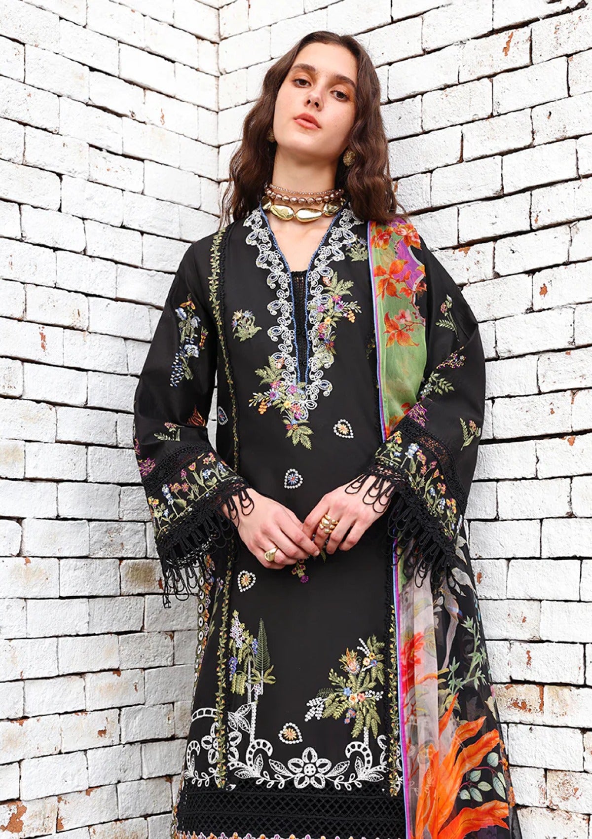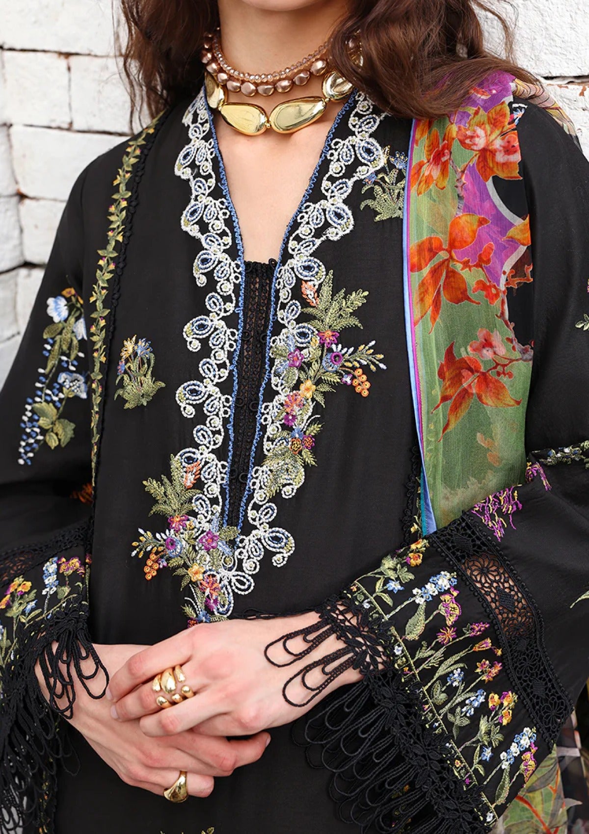 • Embroidered lawn sleeves