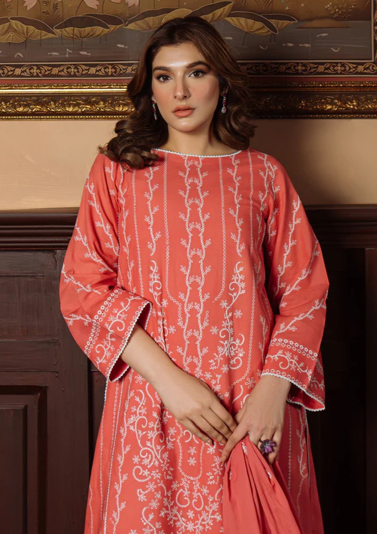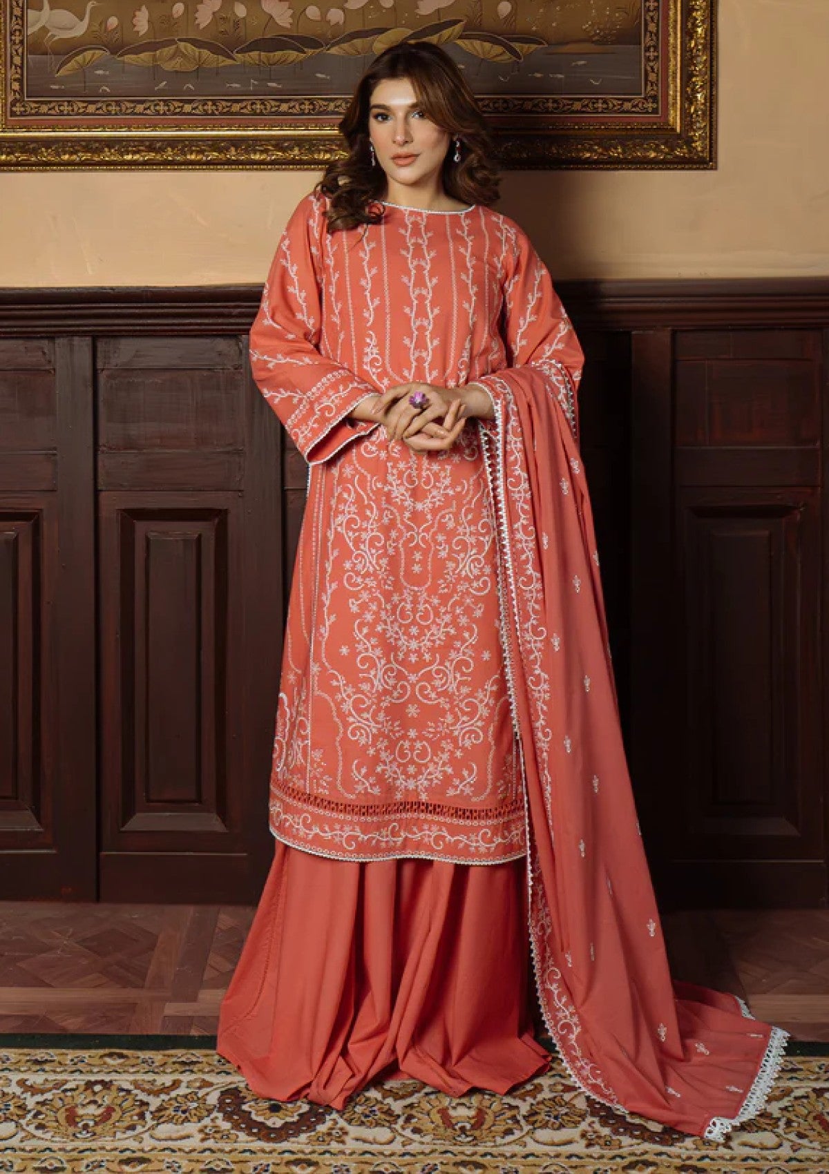 Lawn - Sahar - Festive Chikankari - CK-25-V1-02 - Gilded Coral