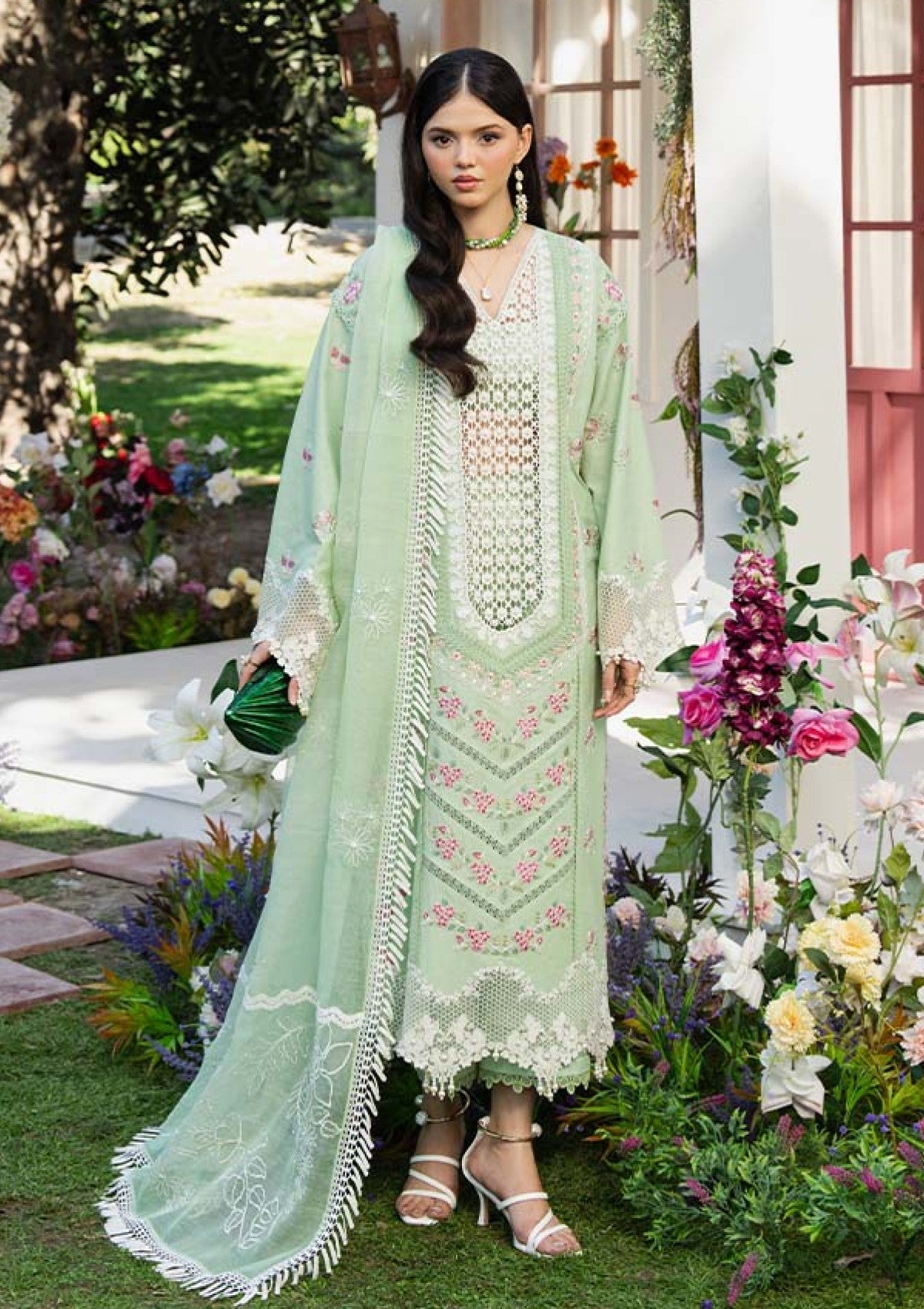 Embrace elegance with our Mint Green Lawn Suit this beautifully crafted ensemble features a refreshing mint green base adorned with delicate floral embroidery, exuding a soft and graceful charm for eid look.