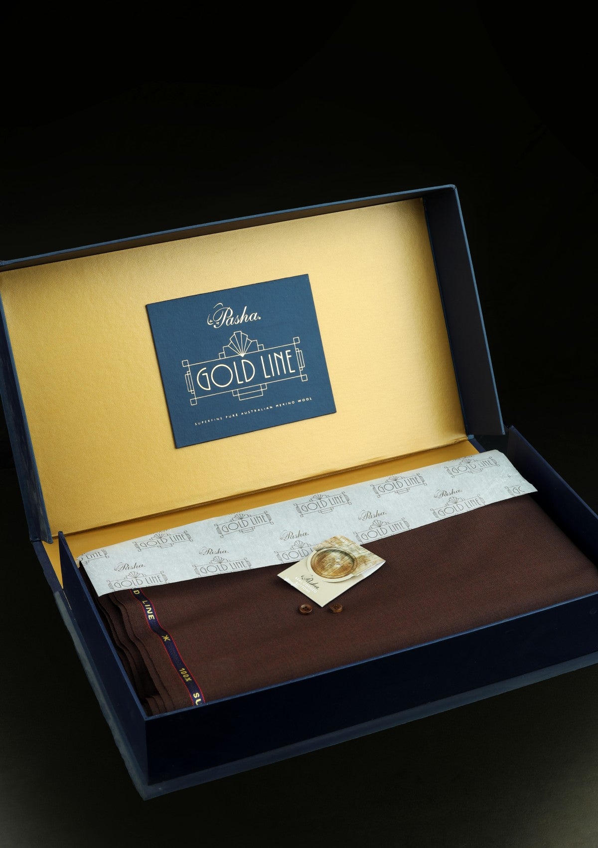 Gold Line – Merino Wool caters to gentlemen with a discerning taste for elegance and prestige. It is a super 130s, 190 gsm, double yarn fabric made from superfine 17.5 micron Pure Australian Merino Wool. Its sophisticated range of colours offers a selection beyond that of ordinary suit pieces. Its dark hues, soft touch, and outstanding fall make it the ideal fabric for formal and evening winter wear and also as a high-end gift.
