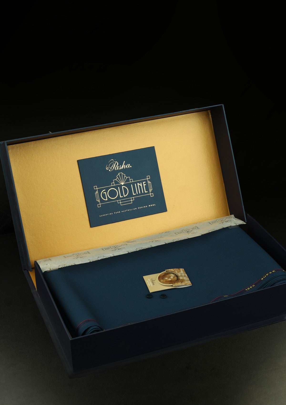 Gold Line – Merino Wool caters to gentlemen with a discerning taste for elegance and prestige. It is a super 130s, 190 gsm, double yarn fabric made from superfine 17.5 micron Pure Australian Merino Wool. Its sophisticated range of colours offers a selection beyond that of ordinary suit pieces. Its dark hues, soft touch, and outstanding fall make it the ideal fabric for formal and evening winter wear and also as a high-end gift.