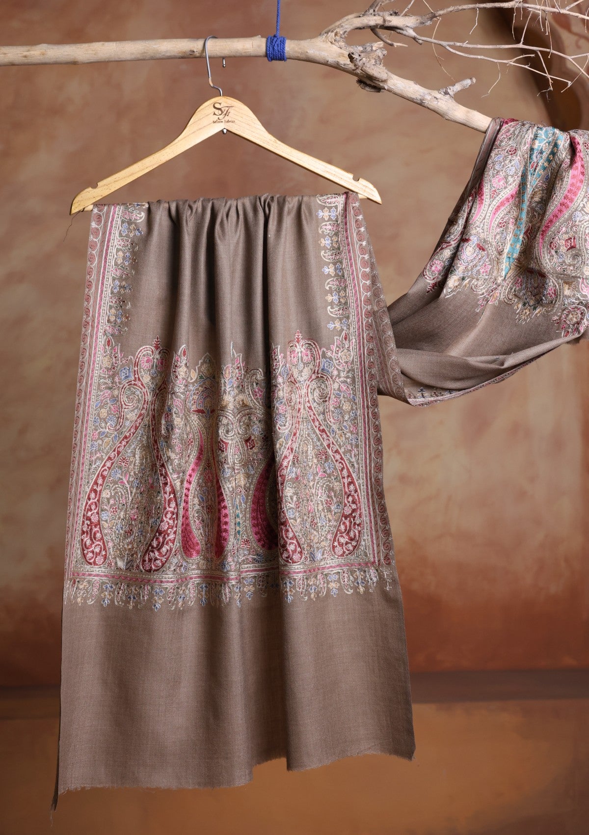 Pashmina Ari Work Jaaldar Scarf D#01 - Brown 1