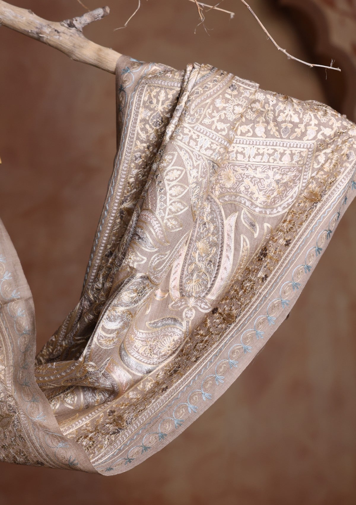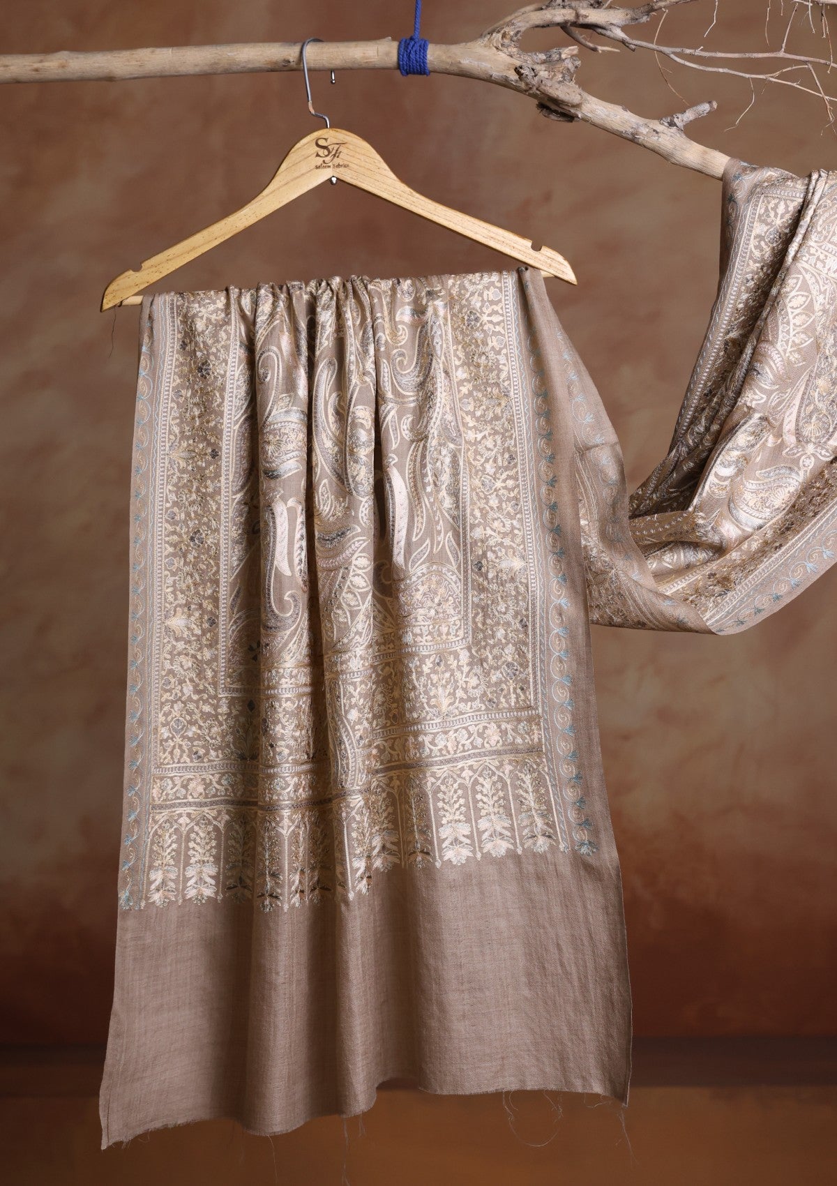 Pashmina Ari Work Jaaldar Scarf D#02 - Brown