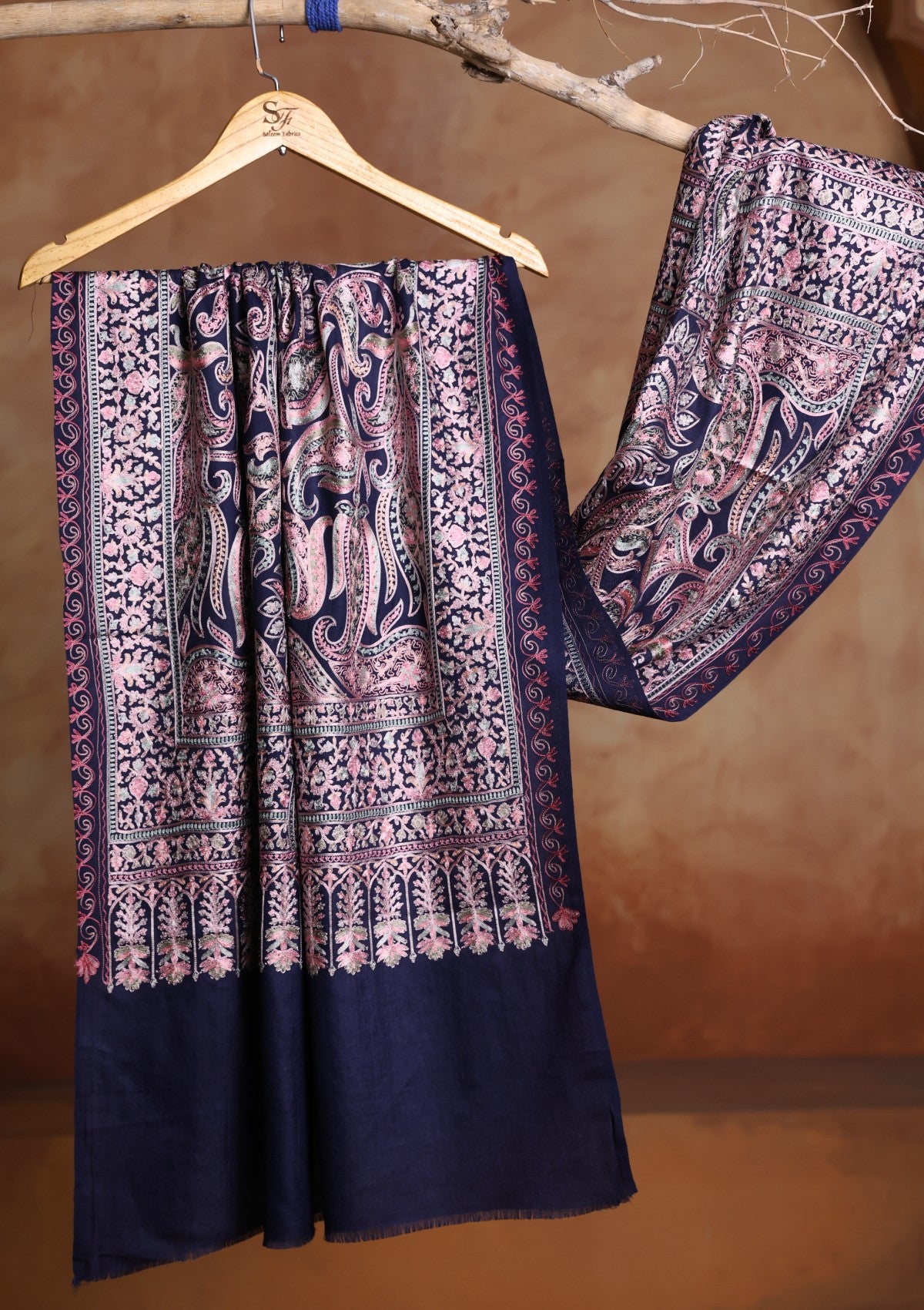 Pashmina Ari Work Jaaldar Scarf D#02 - N Blue